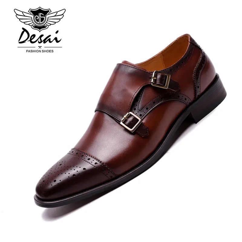 Мужские модельные туфли ручной работы Desai, натуральная кожа, с двойной пряжкой, формальные, для свадьбы, офиса, обувь с ремешком, дышащая обувь