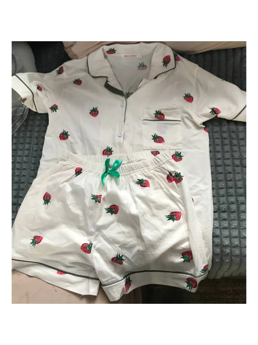 Комплект пижамный Женский, короткий рукав, отложной воротник, шорты с эластичным поясом