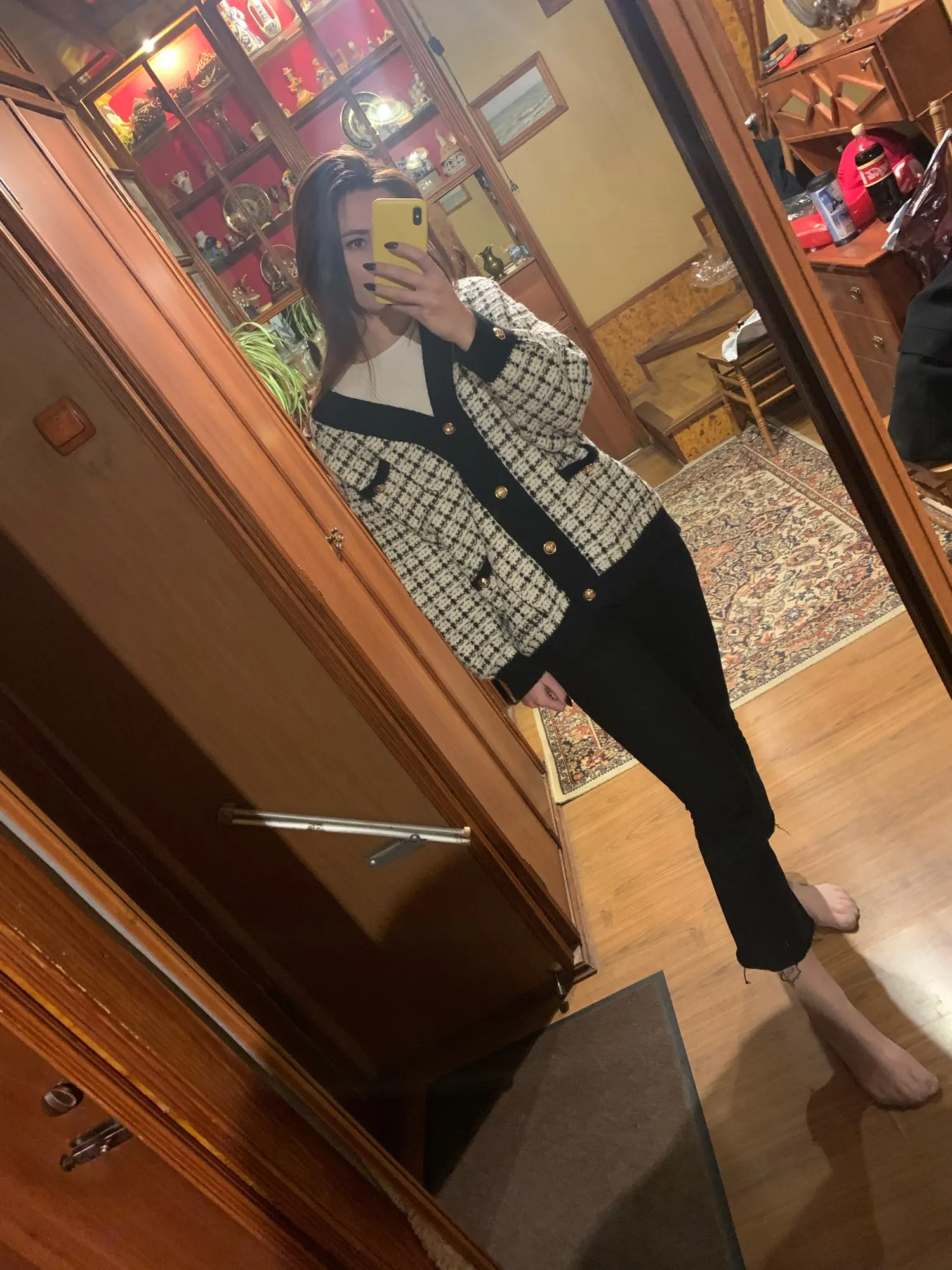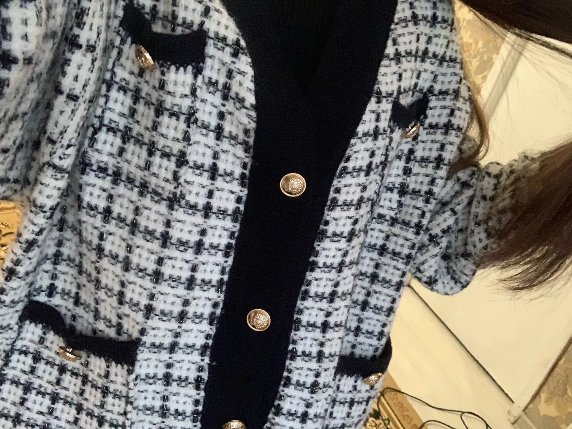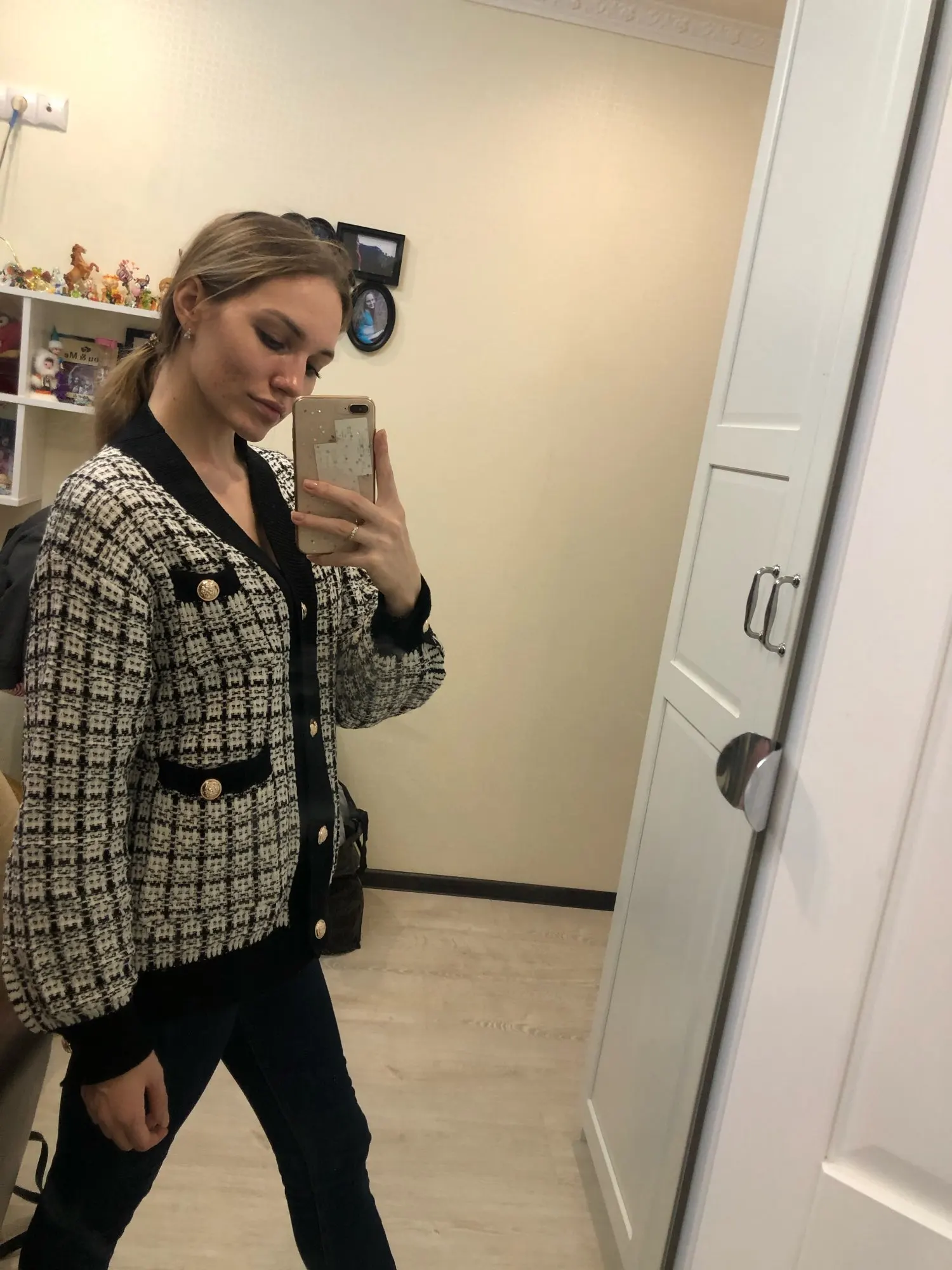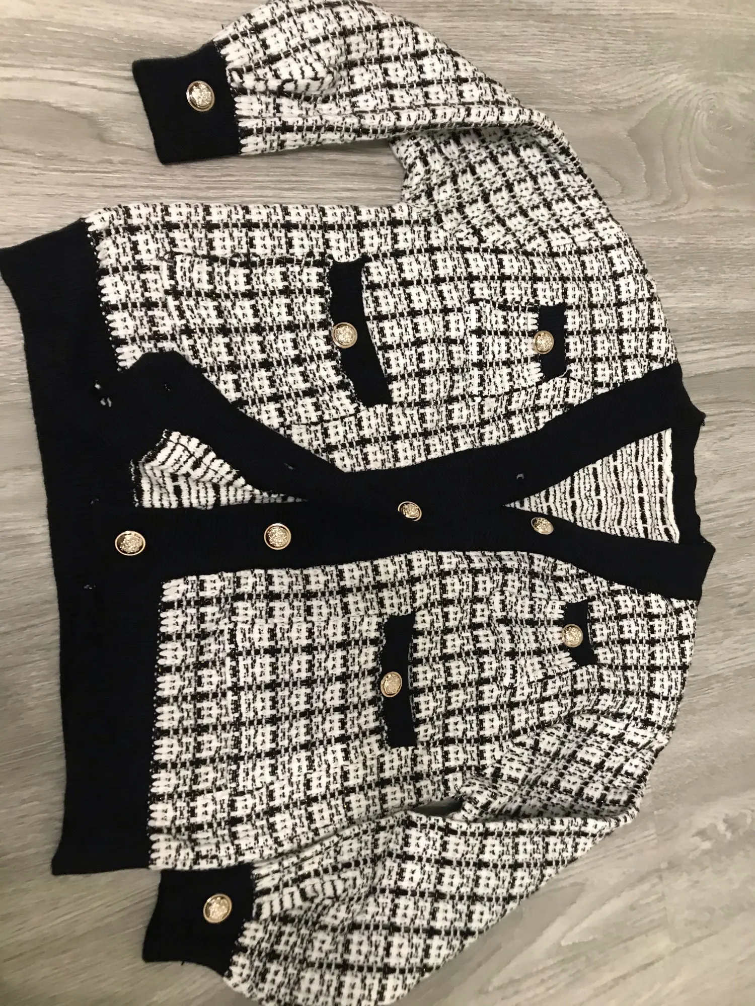 Хороший кардиган, но меньше размер заявленного, думала будет овер сайз. Немного дешевят пуговицы. Перешью на металлические .