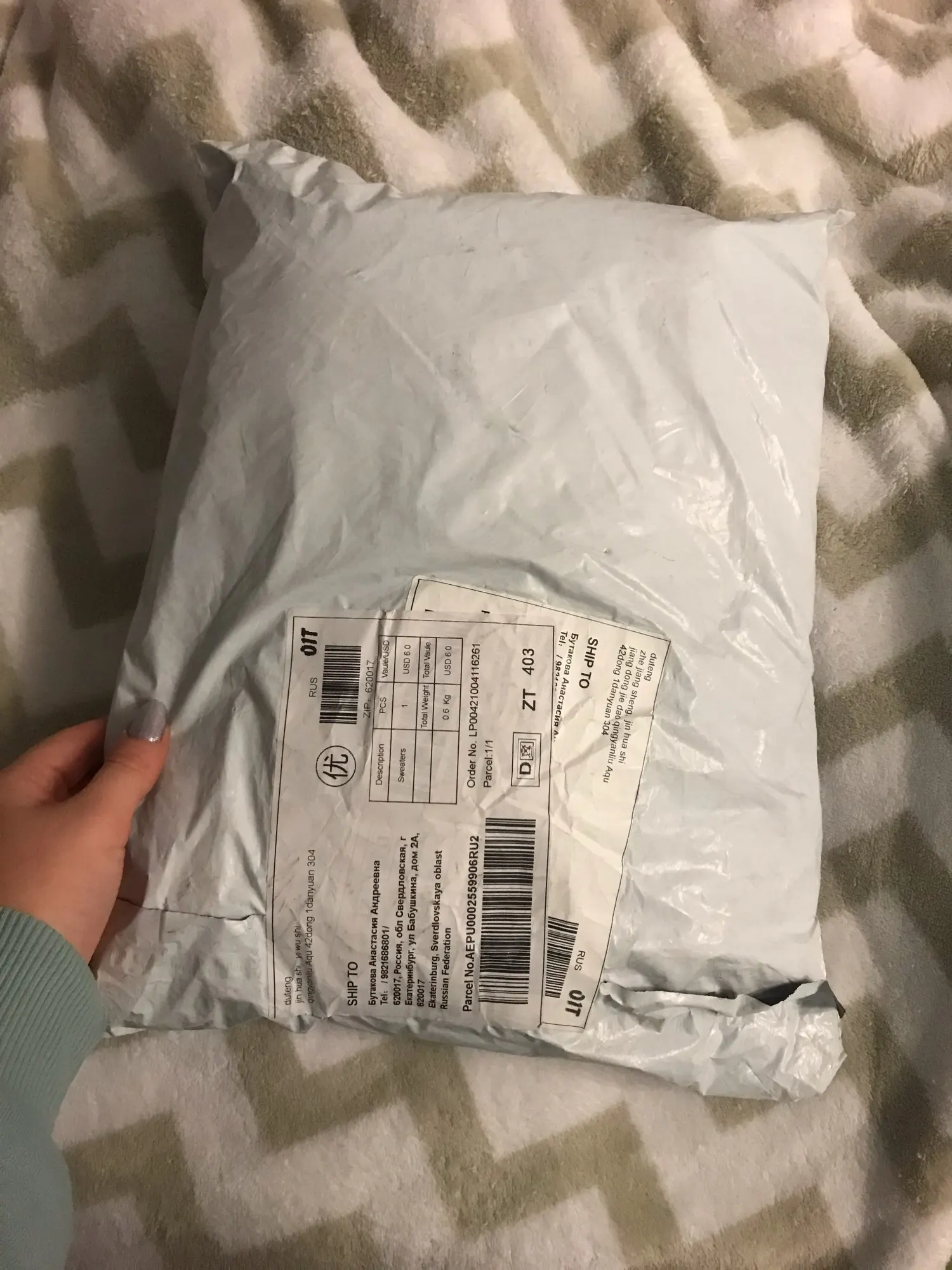 Доставка заняла 17 дней, что очень быстро. Хоть и отправляли 6 дней (это скорее из-за загруженности после 11.11). Мне очень понравился кардиган, точно как на фото. Качество супер, очень тёплый) был бы он немного длиннее, было бы ещё круче, но мне он все равно нравится)