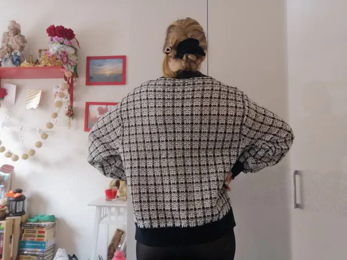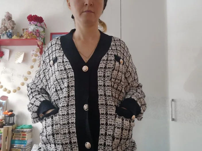 В общих чертах кардиган хороший, но по многим фото он вроде оверсайз, а на мне так обычный кардиган, с учетом того, что мои параметры рост 168 и р-р 40-42. По качеству швов и ниток, немного огорчил. Ниток торчащих много, как на швах, так и на резинках. Рукава кривые.