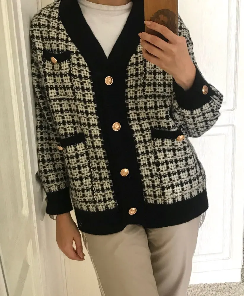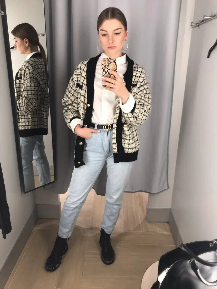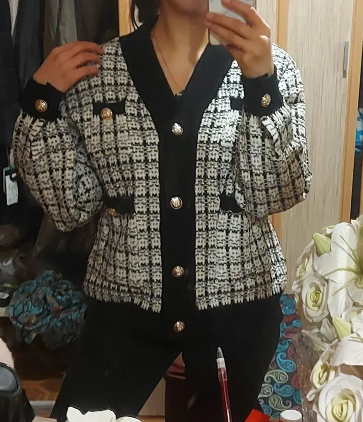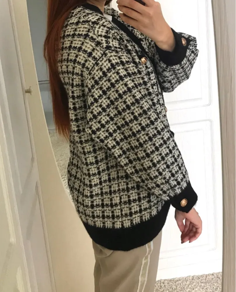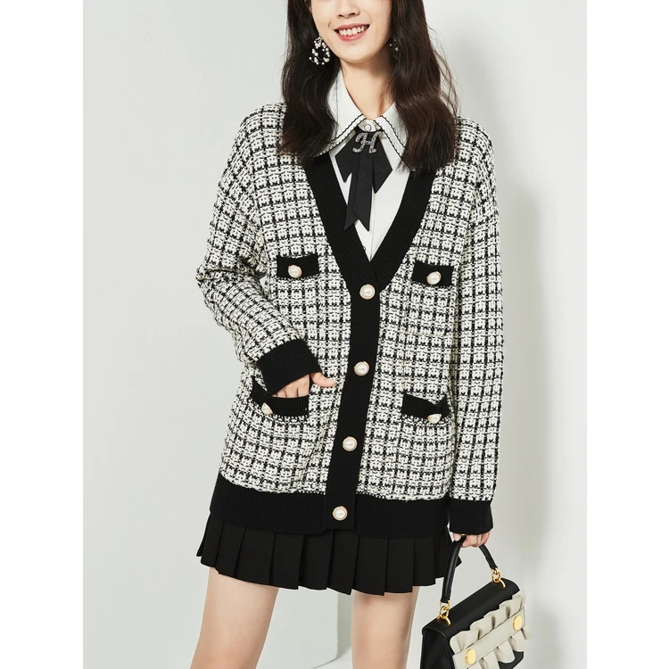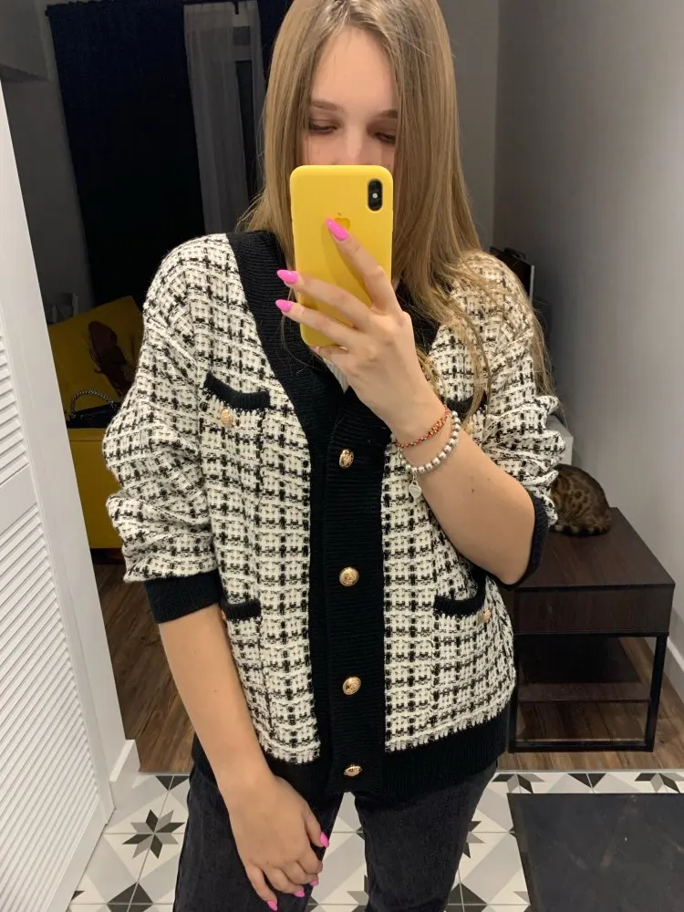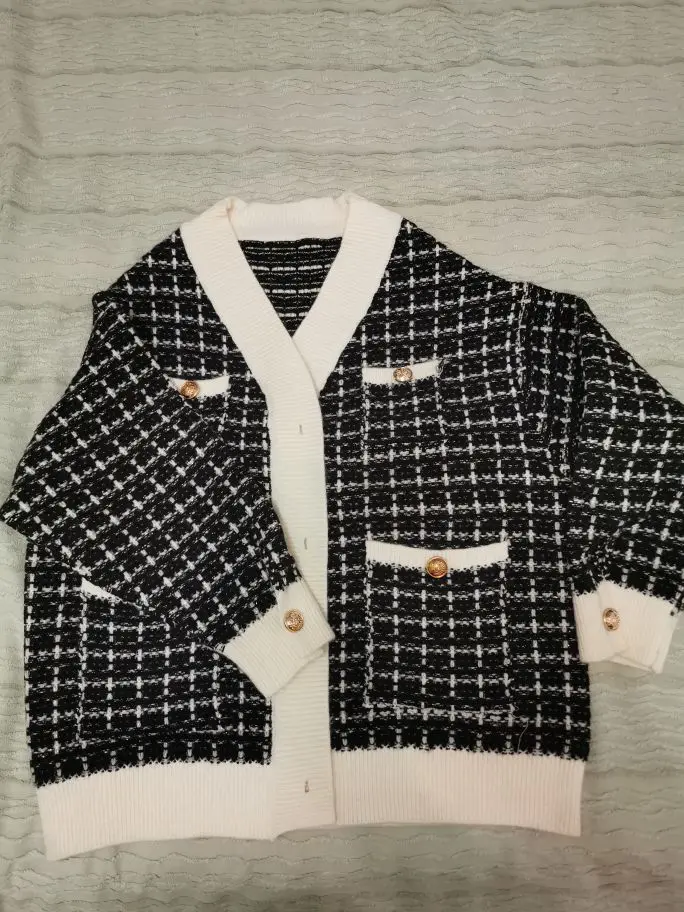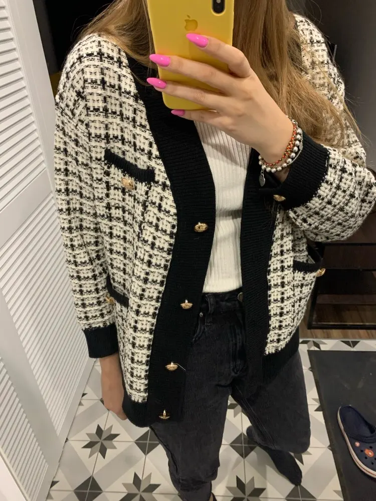 Жакет женский вязаный в клетку H.SA, Длинный свободный кардиган оверсайз, 2021