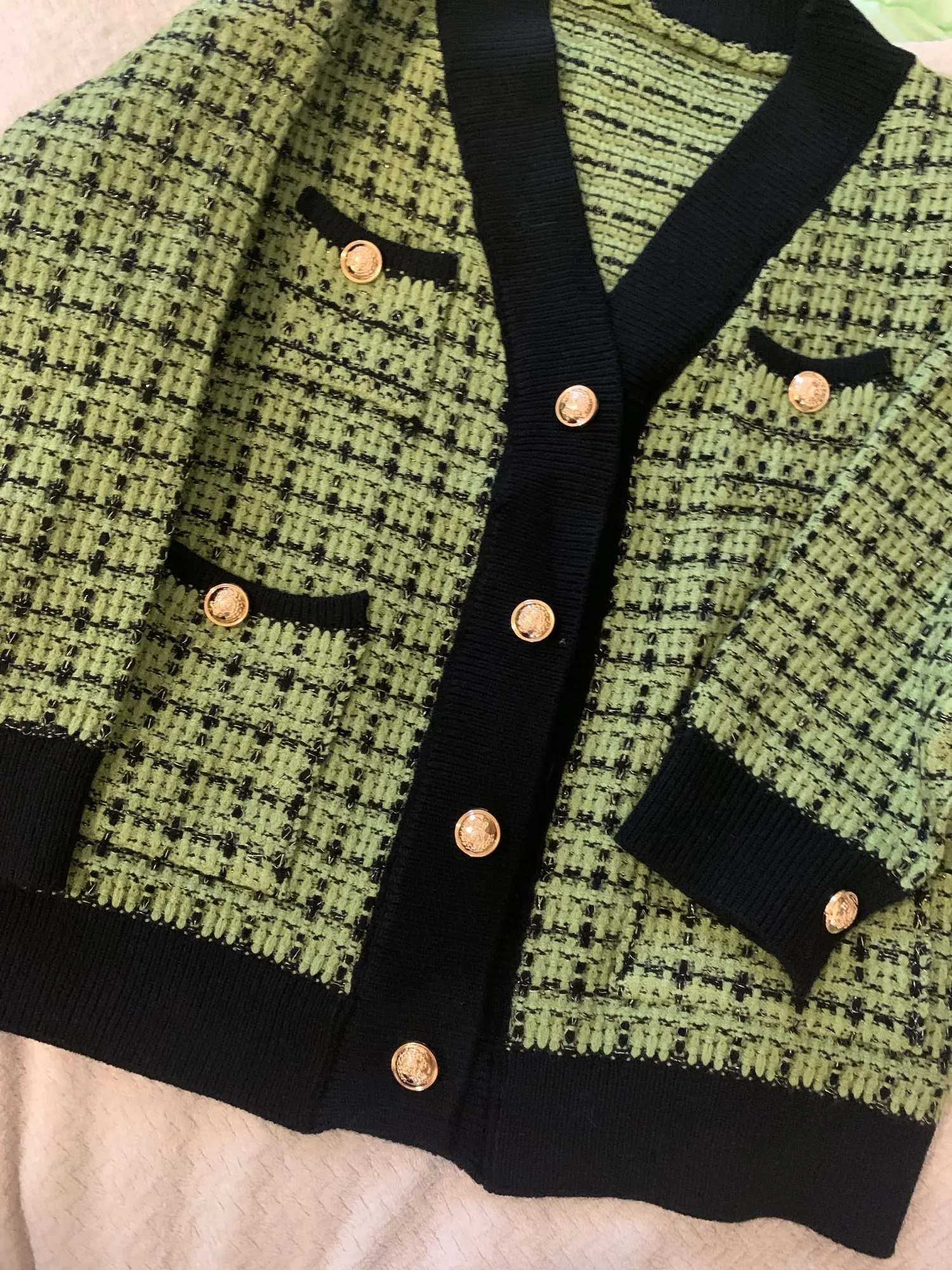 классический кардиган, качество хорошее, цвет брала травяной, фурнитура и швы качественные, продавца и товар рекомендую!