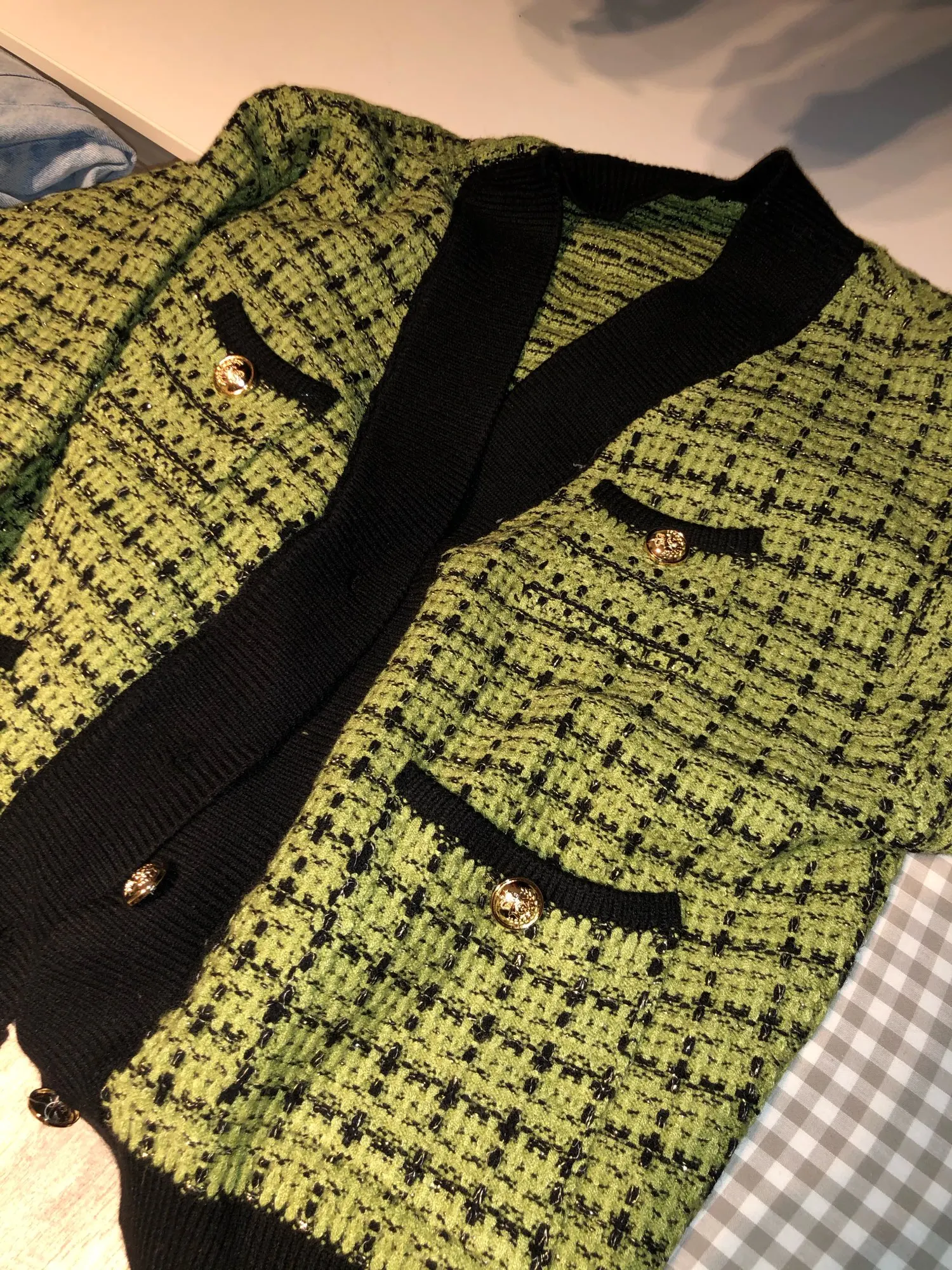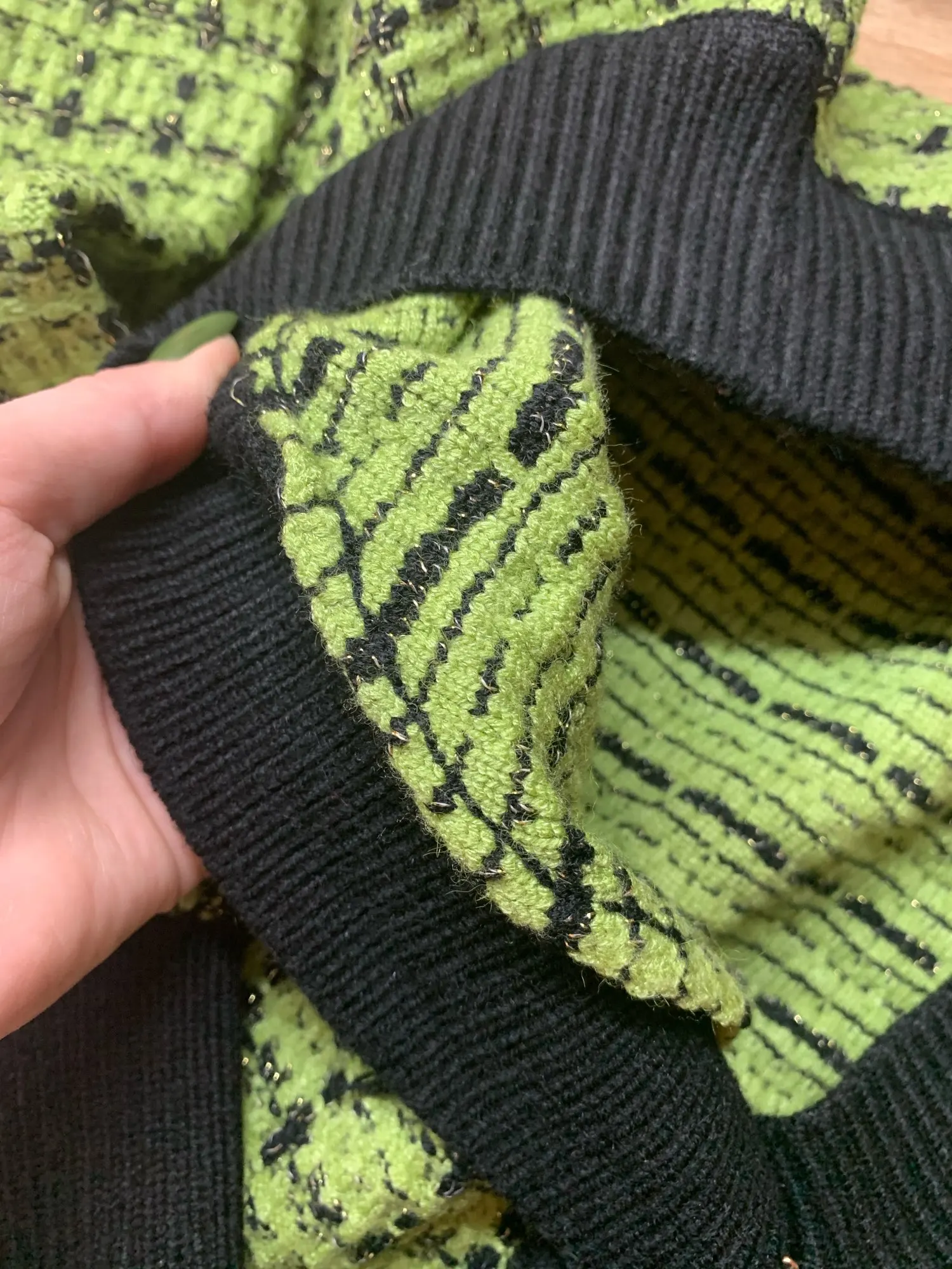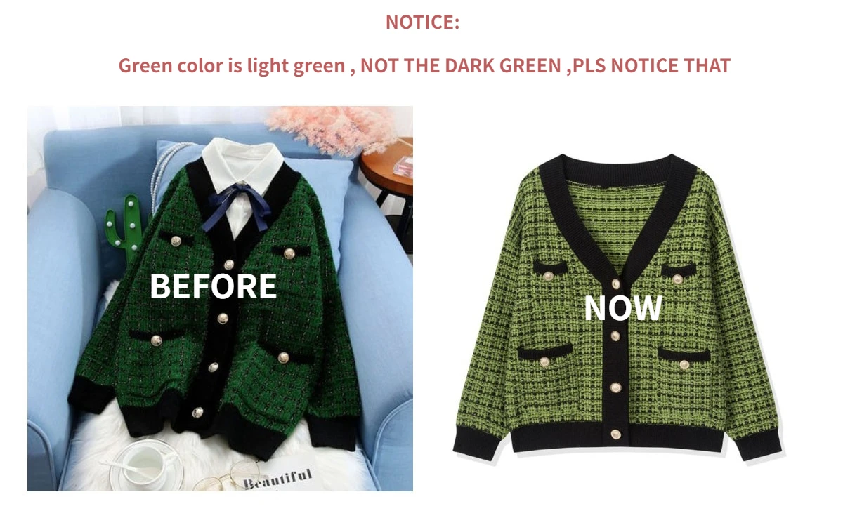 Кардиган мне понравился, сделан аккуратно, плотный, но цвет не соответствует совсем, вместо ярко зелёного пришёл какой-то салатовый