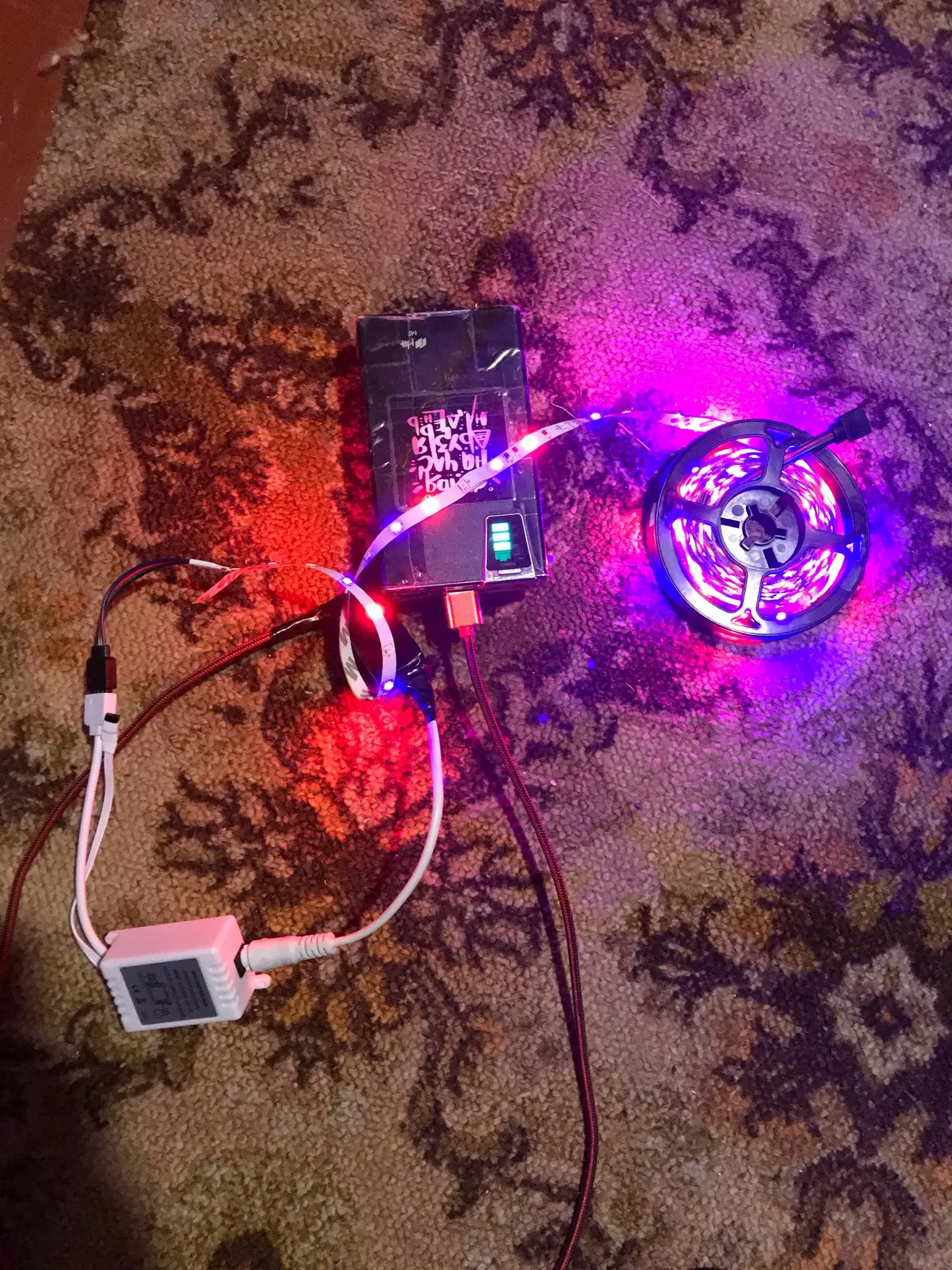Пришло за 2 недели. Работает. запитал светодиодную ленту от батареек для стабильного свечения при разряде