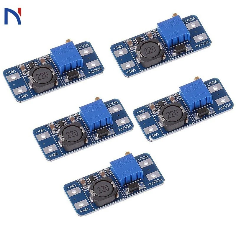Регулируемый Повышающий Модуль MT3608 DC-DC, модуль повышающего преобразователя постоянного тока 2-24 В до 5 В, 9 В, 12 В, 28 в