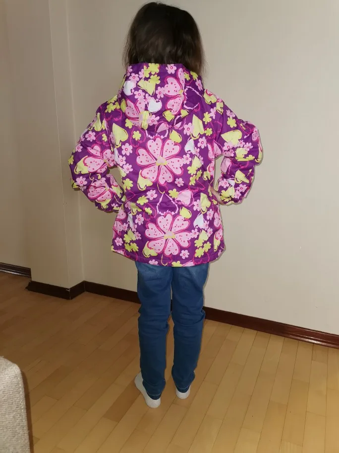 Куртка дошла очень быстро - в Ярославль за 10 дней. Качество отличное. Размер на девочку 4 года среднего роста подошел с хорошим запасом, как я и хотела.