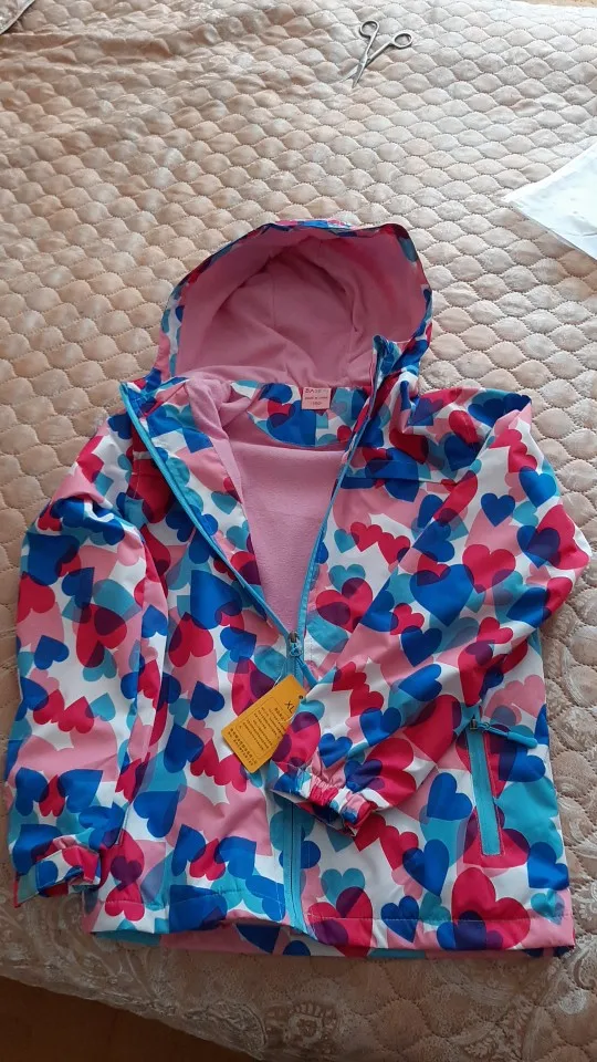 Отличная ветровка, я беру уже вторую такого же цвета. На рост 123 сейчас велика ненамного, но летом будет как раз. Отлично отстирывается ветровка. На северное холодное лето как раз. Плотная, внутри флис. Дождь не пропускает, сухая внутри