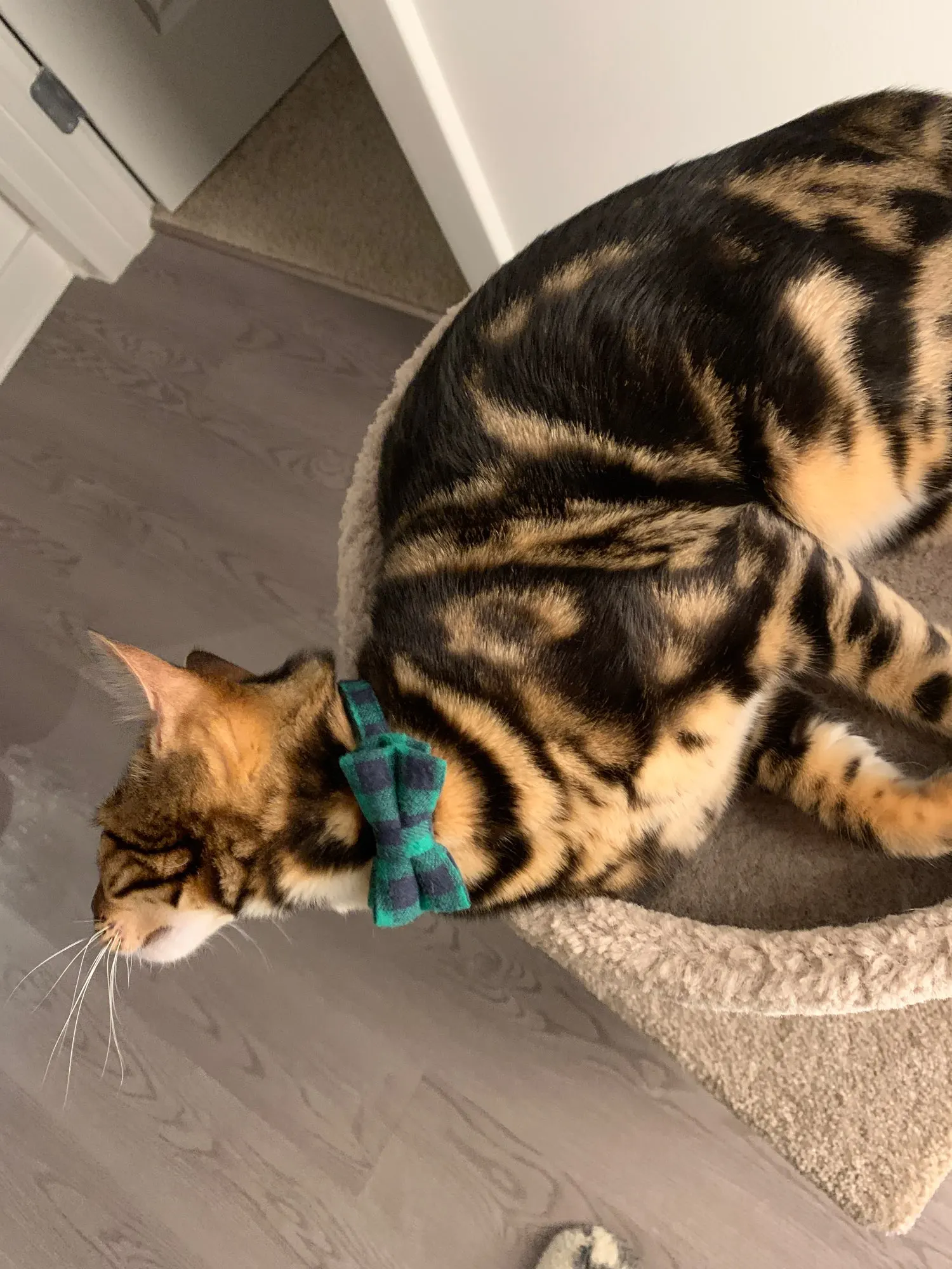 Доставка быстрая, ошейник очень понравился, красивый и качественный, бантик снимается, очень удобно регулировать размер.