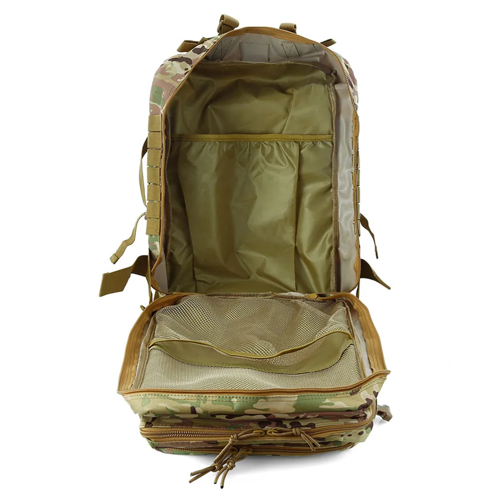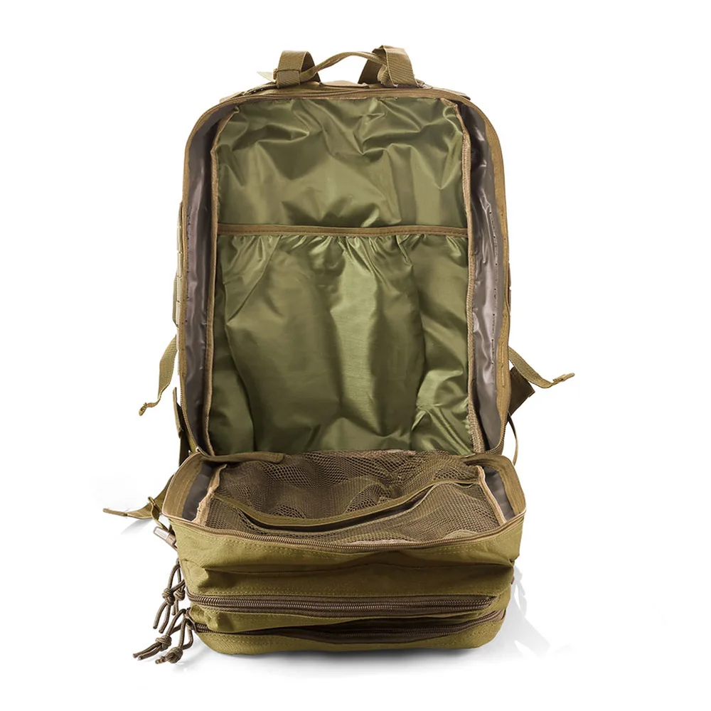 Этот сверхпрочный тактический рюкзак 45л является прочным и практичным, может использоваться в качестве школьной сумки, рюкзака на выходные, рюкзака для пеших прогулок, основной тренировочной сумки и рюкзака на 1 - 2 дня.