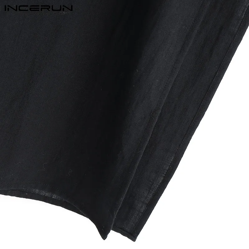 Платье-рубашка INCERUN мужское хлопковое с длинным рукавом, повседневная винтажная индийская Курта рубашка, Пакистанская мусульманская одежда, однотонная, 5XL