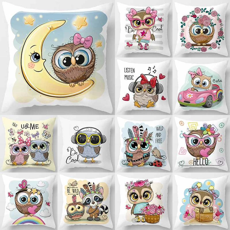 Декоративная подушка с рисунком Совы Подушка Наволочка Чехол для подушки из полиэстера 45*45 для дивана 40877