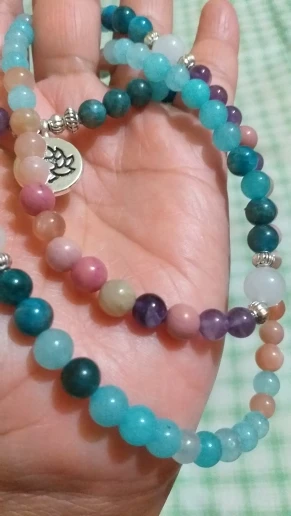 Красивое ожерелье. Он имеет определенный вес, не пластиковые камни, металлические детали, такие как медаль и промежуточные бусы, очень красивы. Это очень хорошо сделано. Can be used As Bracelet or necklace. Поставляется в тканевой сумке для тщательного хранения. Я рекомендую магазин; Он прибыл в чили раньше, чем ожидалось.