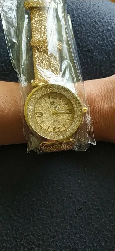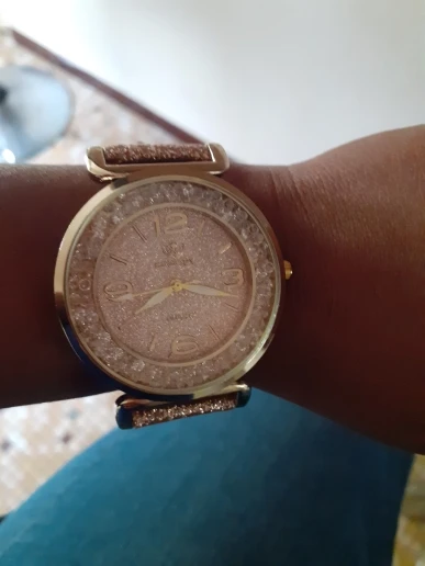 Часы красивые, слишком яркие, моя рука такая тонкая, была немного большой, но камни вокруг двигаются и блестят, хорошо упакованы, ручки идеальные, и быстро появились, несмотря на пандемию. Стоит того, что заплатили. Рекомендуется