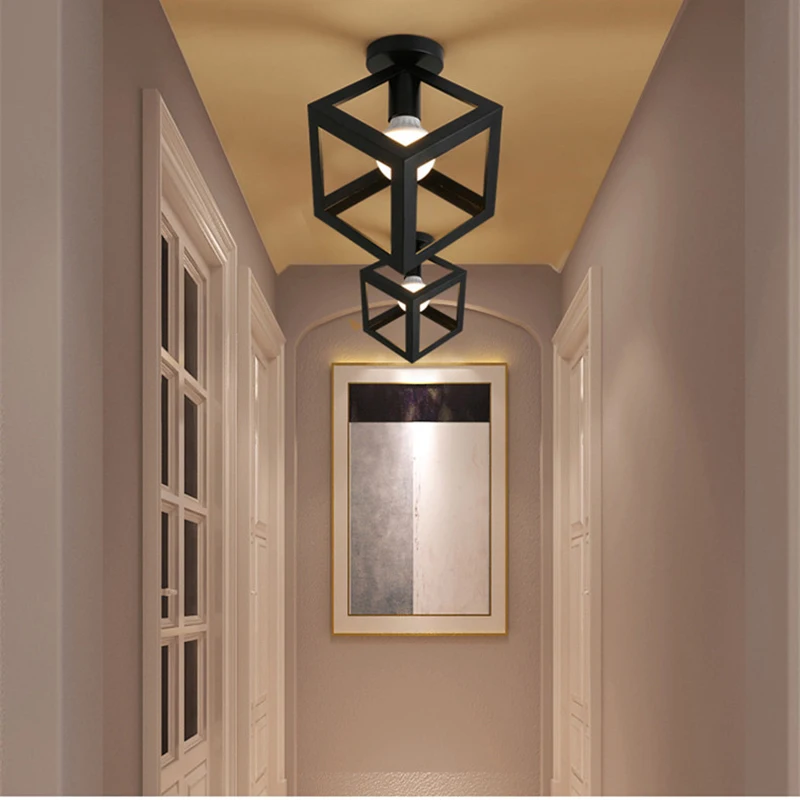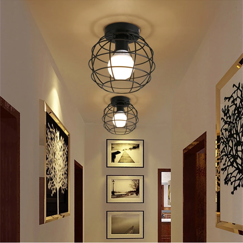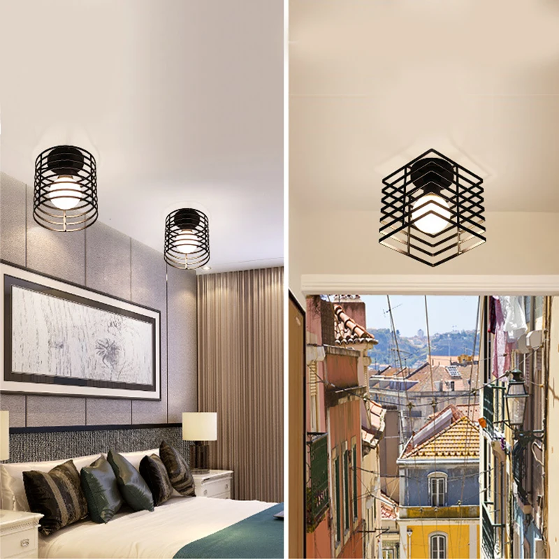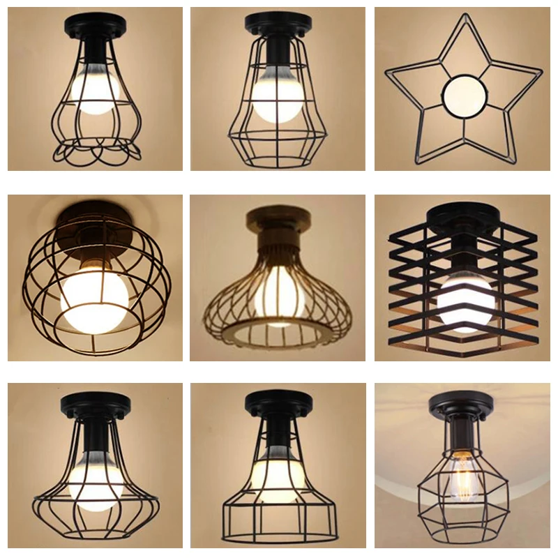 Современные светодиодные потолочные светильники E27 из кованого железа, черные потолочные светильники для кухни, гостиной, спальни, учебы, прохода, ресторана, кафе и отеля