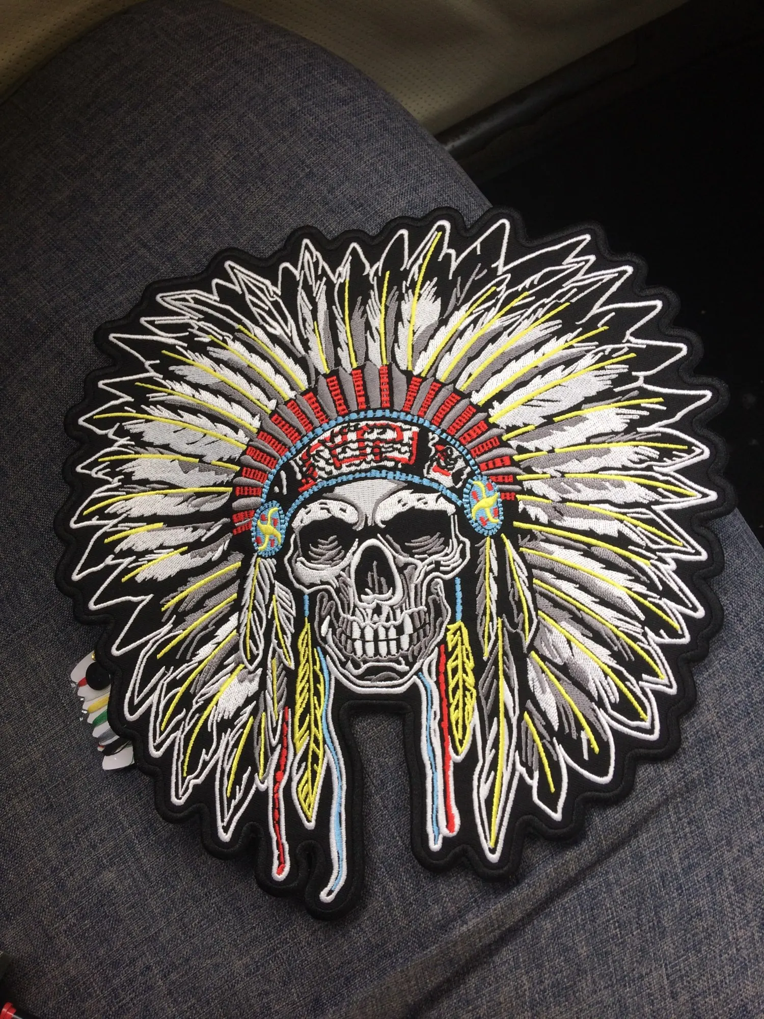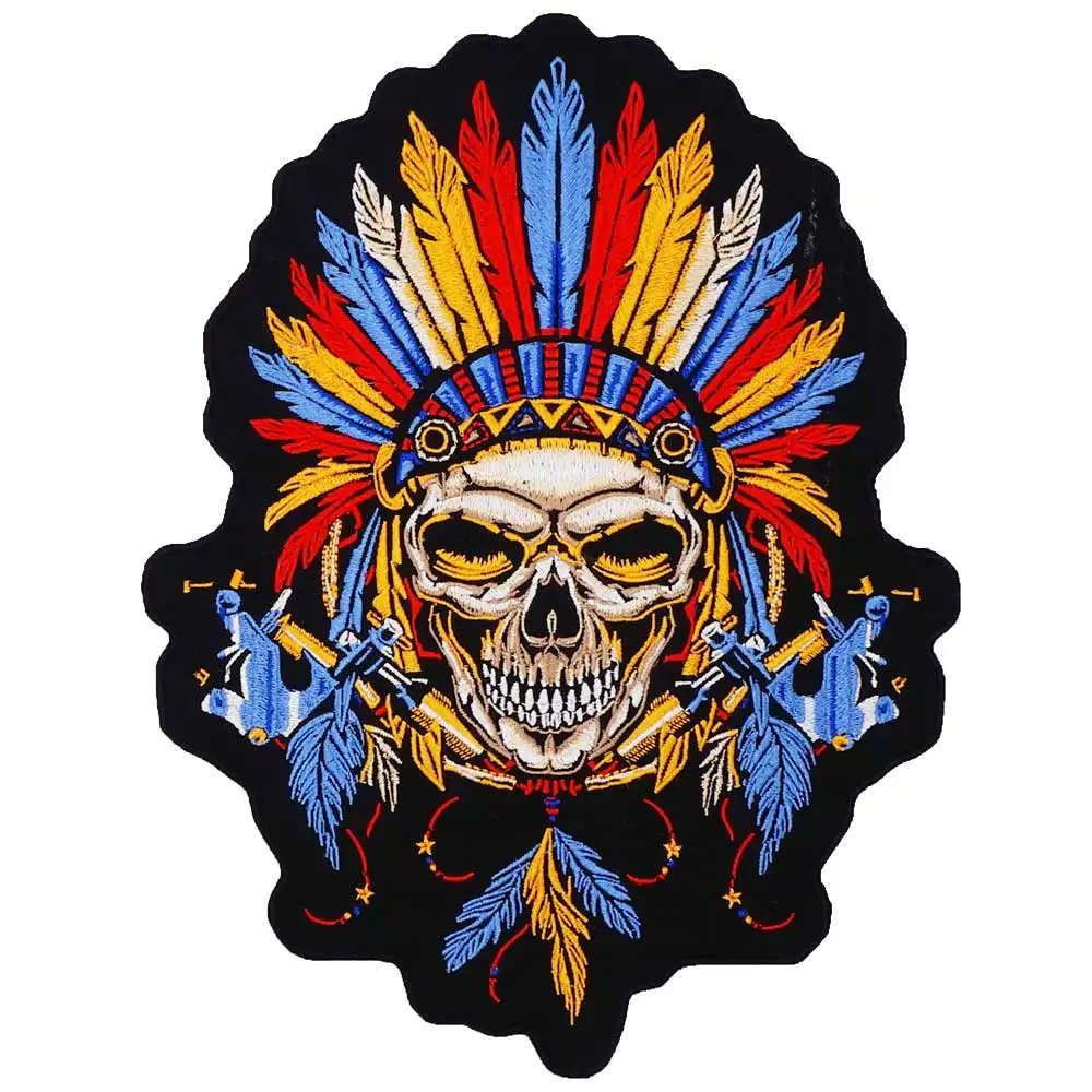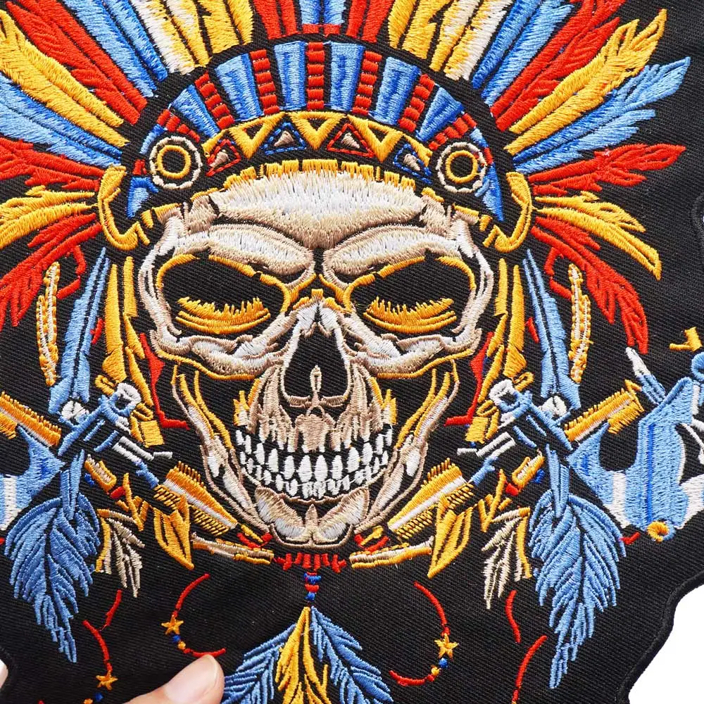 Большой индийский череп, забавные байкерские нашивки с вышивкой в стиле панк-рок для майки, шапки, джинсов