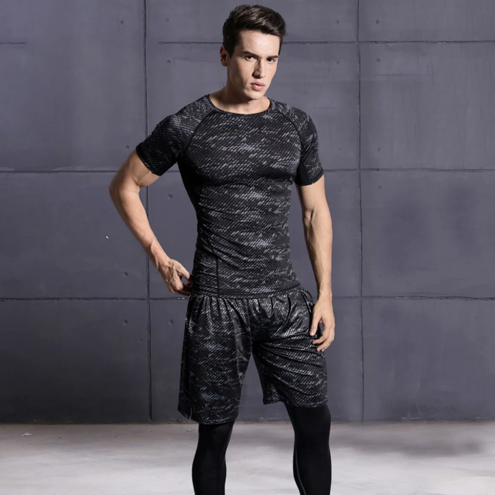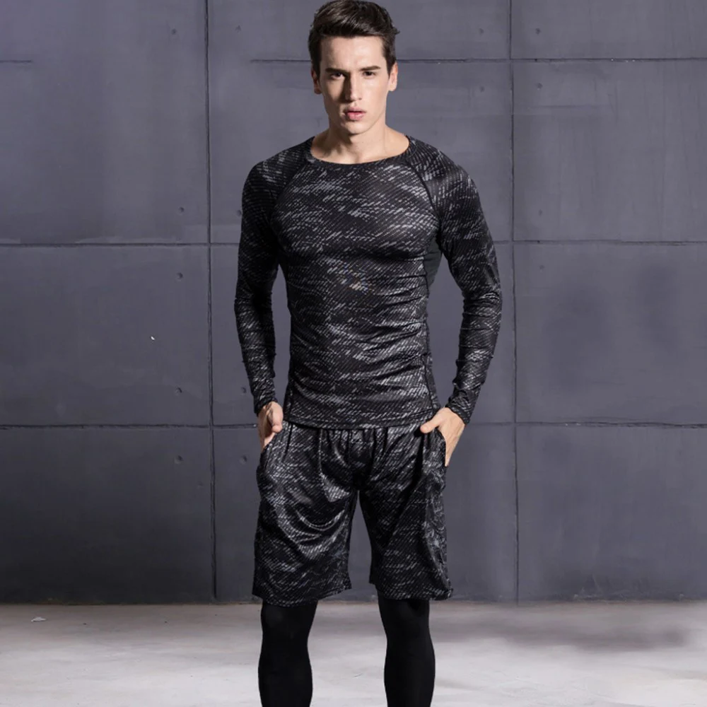 Мужской спортивный костюм, компрессионный спортивный костюм для тренажерного зала, фитнеса, тренировок, тренировок, бега, бега, спортивная одежда