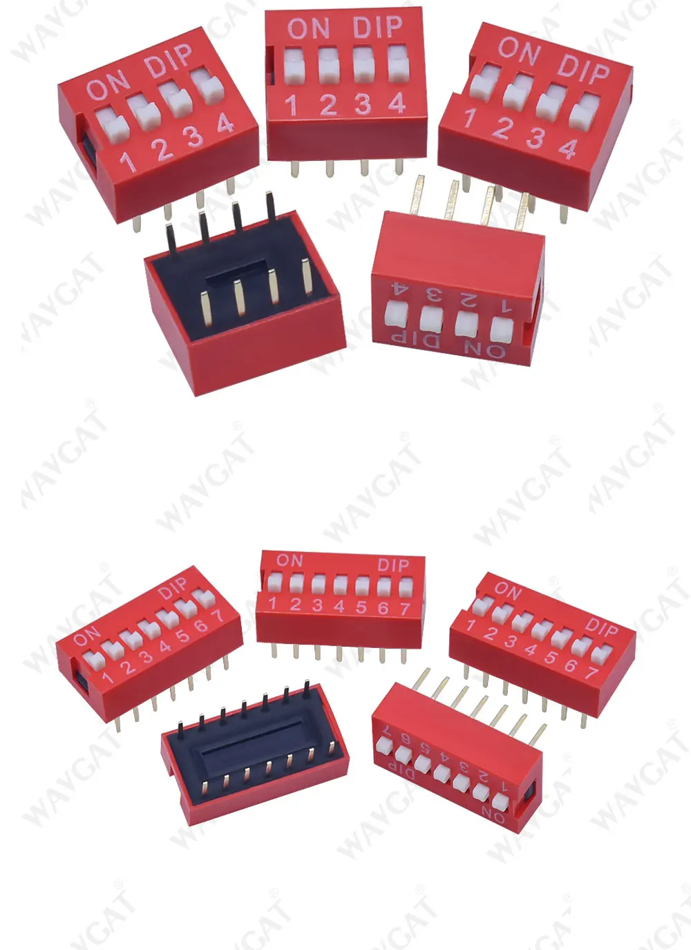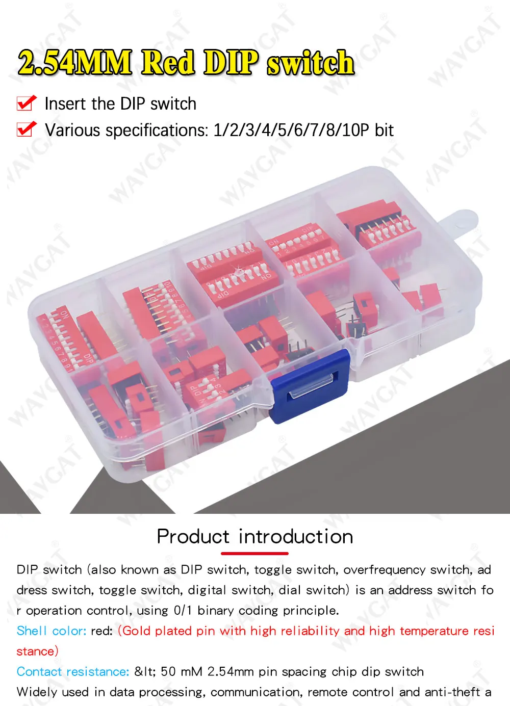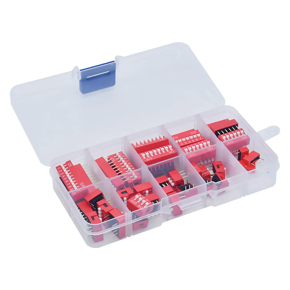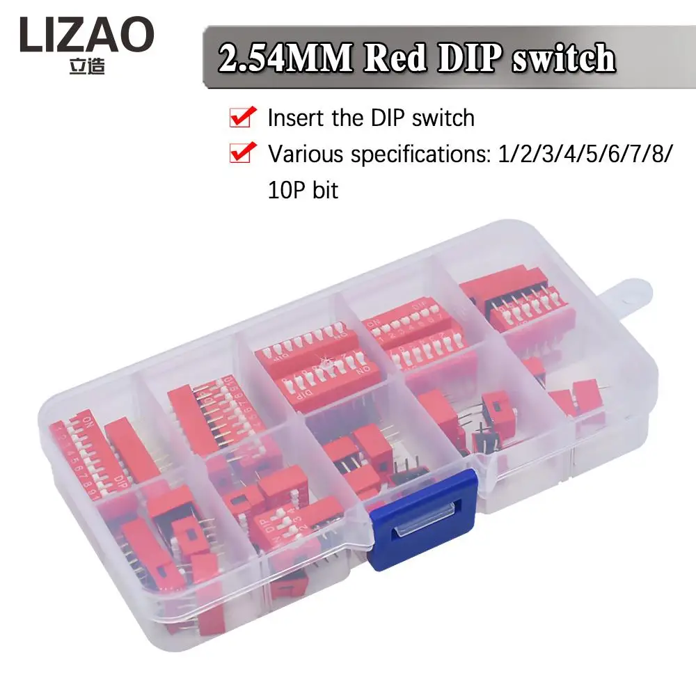 Набор переключателей LIZAO Dip, в коробке 1 2 3 4 5 6 7 8, 10 каналов, 2,54 мм, переключатели с красной защелкой, смешанный набор, каждый комплект из 5 шт.