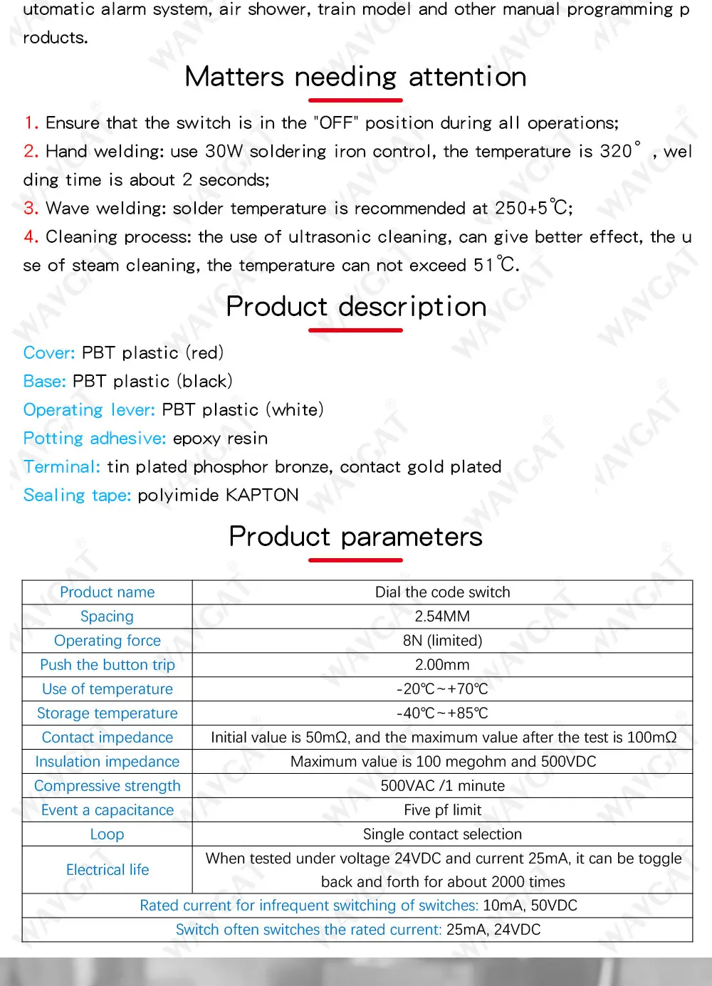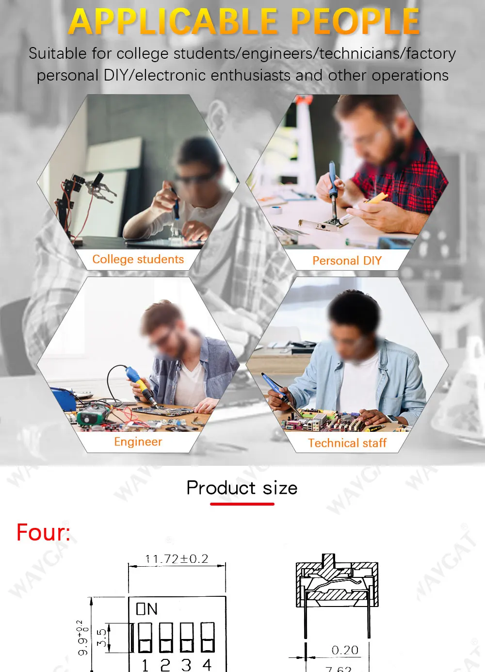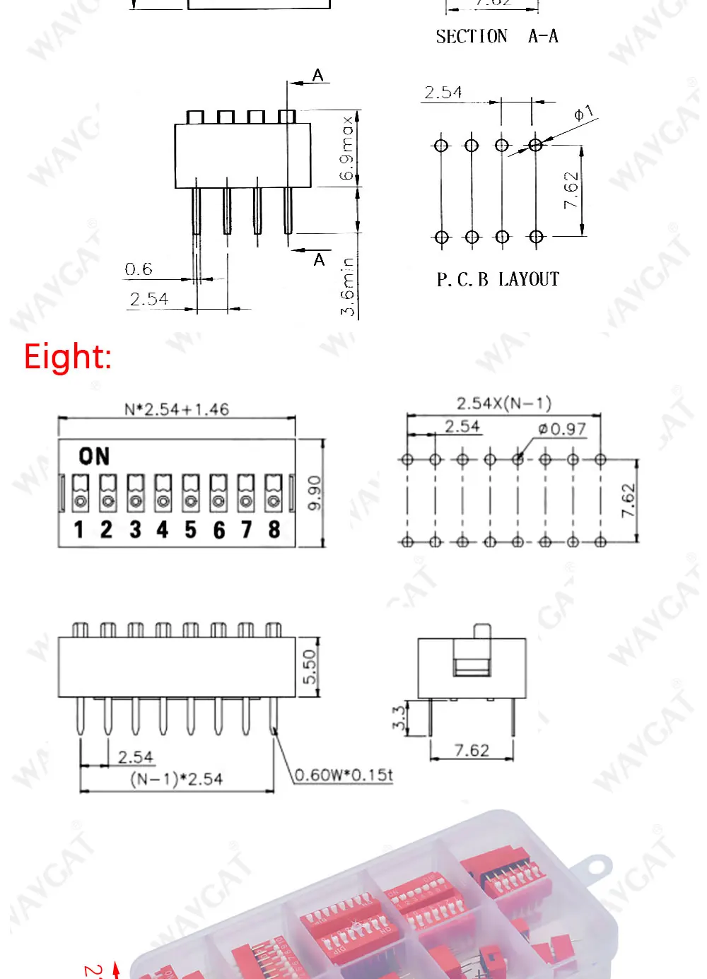 Набор переключателей LIZAO Dip, в коробке 1 2 3 4 5 6 7 8, 10 каналов, 2,54 мм, переключатели с красной защелкой, смешанный набор, каждый комплект из 5 шт.
