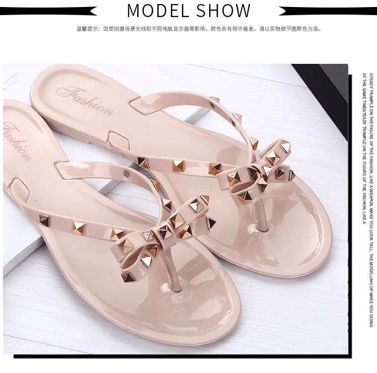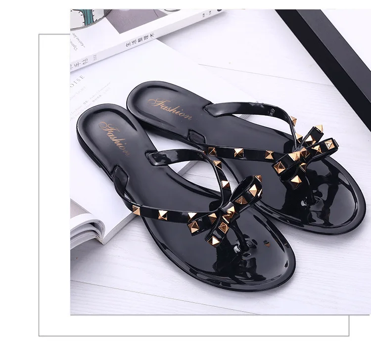 Популярные Модные женские шлепанцы, летняя обувь, крутые сандалии на плоской подошве с заклепками и большим бантом, брендовая прозрачная обувь, сандалии для девочек, размер 36-45, 2020