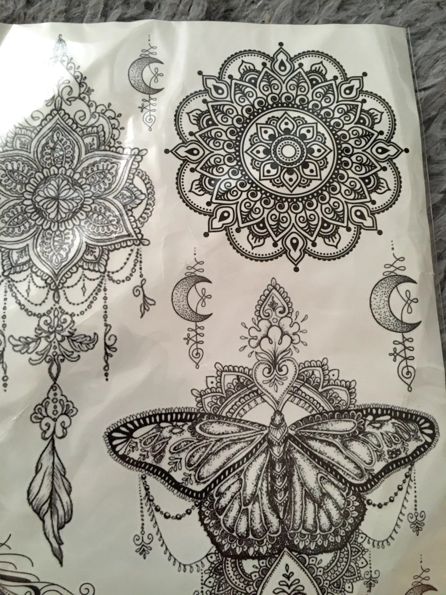Богемные серьги хна мандала цветок временные татуировки наклейки лунное перо Женщины Девушки татуировки черные звезды водостойкие татуировки Поддельные Украшения