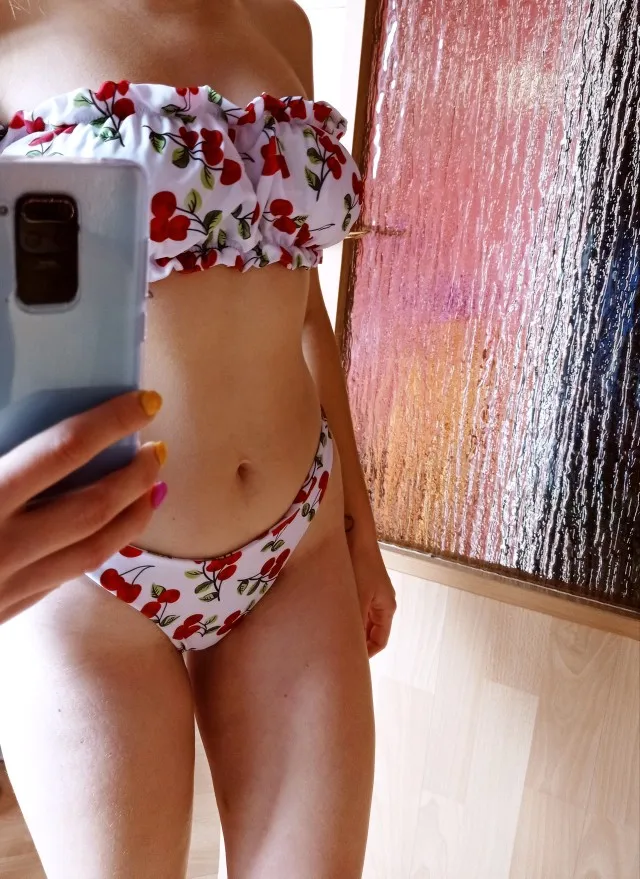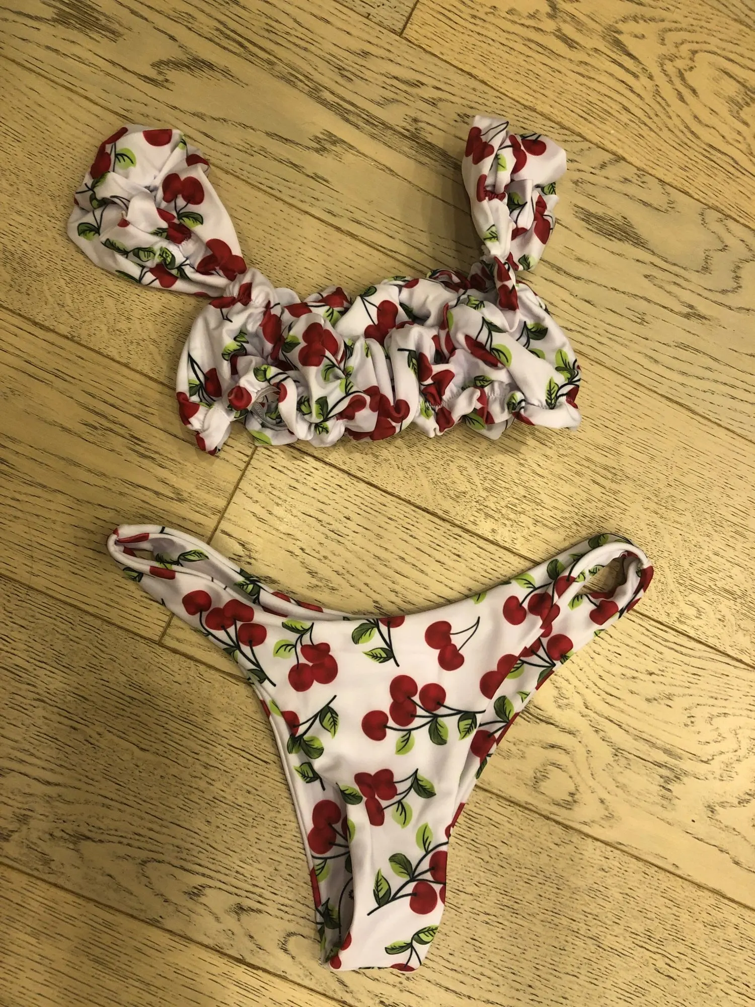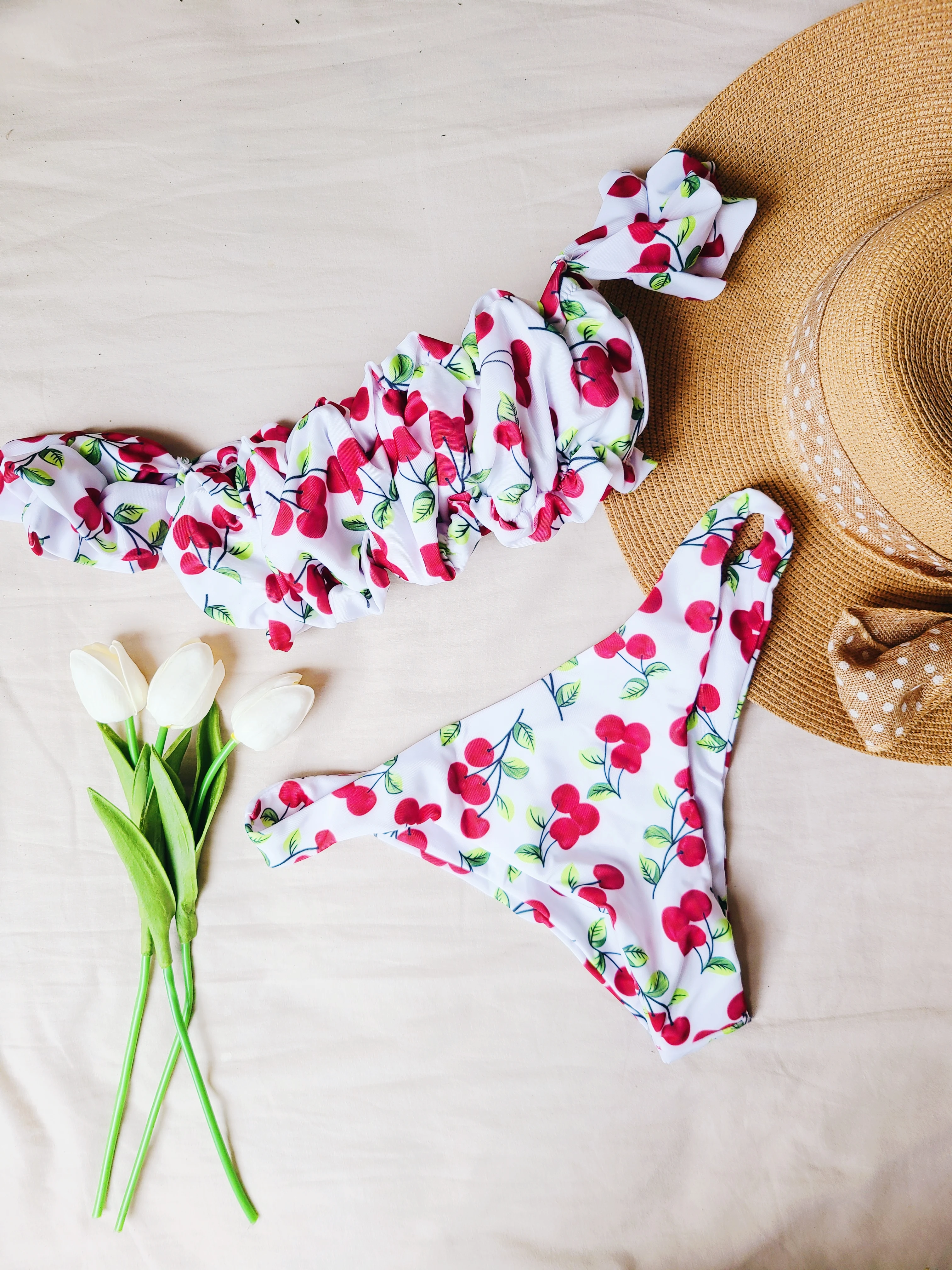 Бикини с открытыми плечами и вишневым принтом, купальный костюм с высоким вырезом для женщин, Бразильская одежда для плавания, комплект бикини из двух предметов, купальный костюм для плавания, 2021