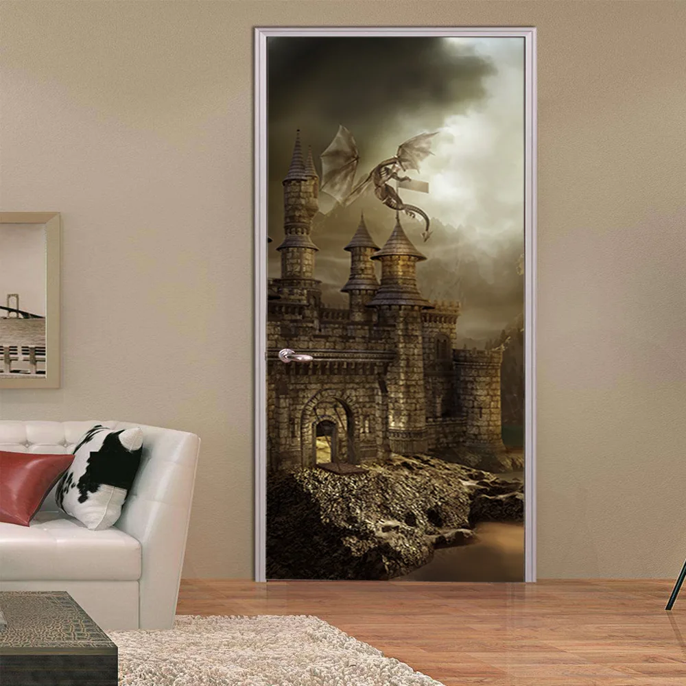 3D Дракон Летающий на ретро Europeon замок двери наклейки для Гостиная Спальня виниловые клеящиеся обои подарки детей наклейка на дверь космос icon star icon star icon star icon star icon star