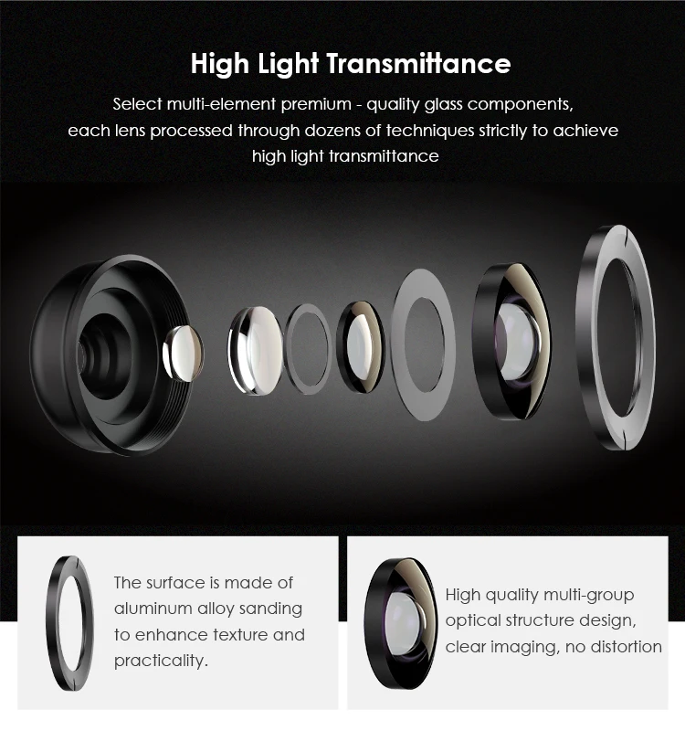 【Нет темных краев без искажений 】 Этот широкоугольный объектив захватывает еще 2x изображение с многослойной стеклянной конструкцией, которая обеспечивает четкость края. 【Когда использовать этот Lens】 Пейзажи: идеально подходят для великолепного горного пейзажа; Путешествия: получите всю сцену во время изучения новых мест; Архитектура/Недвижимость: захват более широкого вида интерьеров или полной высоты небоскреба; Групповые фотографии: делайте групповые фотографии в два раза больше людей. Никогда не беспокойтесь о том, что ваши дети иссякнут на картинке; Видео: Добавьте контекст к любой сцене во время борьбы с кадром, которое происходит на мобильных видео