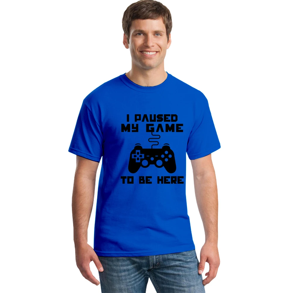 Я приостановил свою игру, чтобы быть здесь, Мужская футболка, забавный игровой видеоплеер, смешные футболки с смешным юмором, шуточные футболки с буквенным принтом, мягкие мужские топы