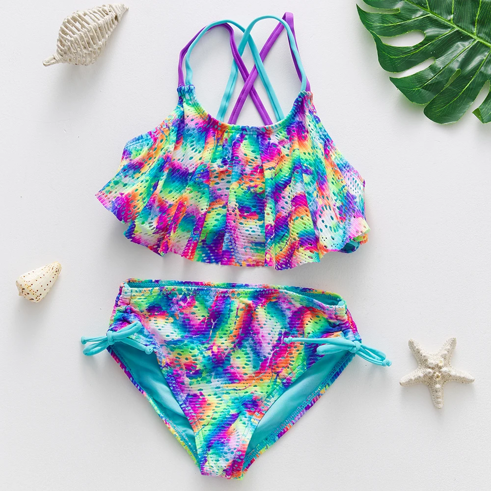 Новинка 2021 года; Купальник для девочек; Плиссированный комплект бикини для девочек; От 3 до 16 лет детский купальник; Купальный костюм для детей girls-ST278