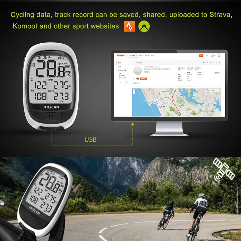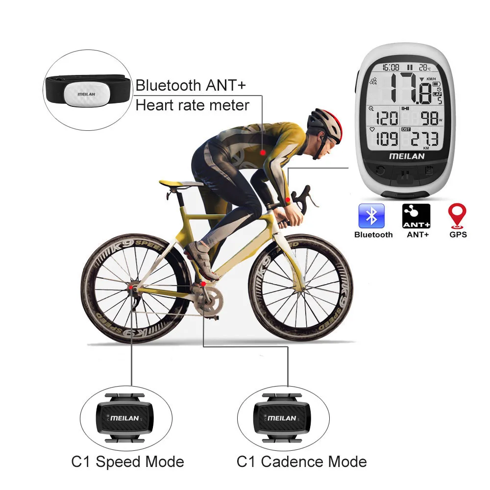 Meilan M2 велосипедный gps компьютер Bluetooth ANT + велосипедный компьютер поддержка подключения с частотой сердечных сокращений