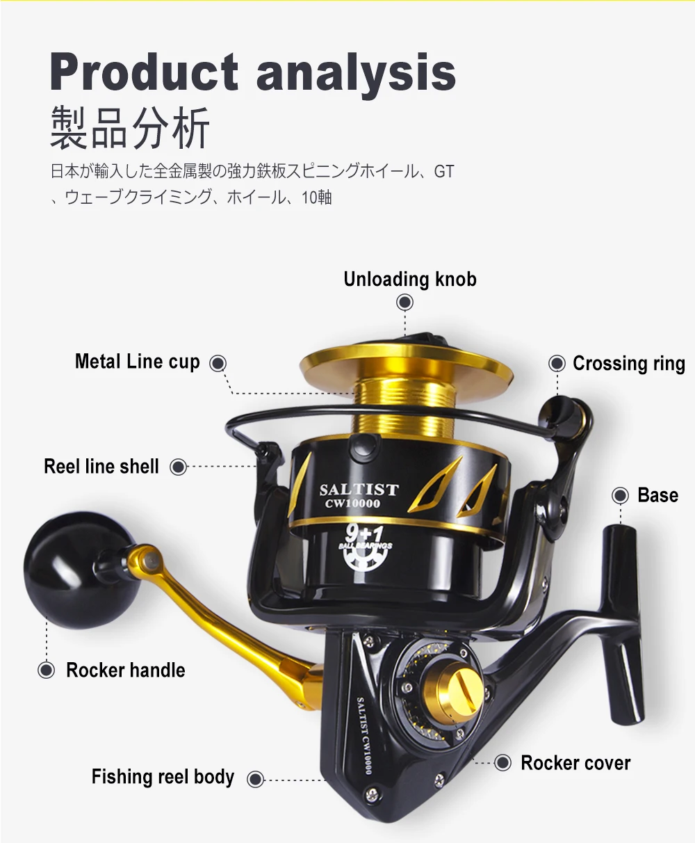 Рыболовная катушка Lurekiller, рыболовная катушка для ловли рыбы в соленой воде, 10 шарикоподшипников, тяговое усилие 35 кг, сделано в Японии