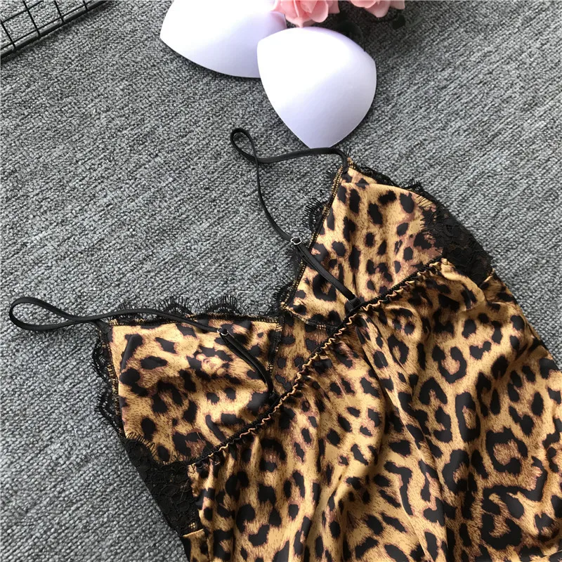 Весенняя Новинка леопардовая Сексуальная кружевная Пижама Lisacmvpnel с нагрудной подушкой спагетти на бретельках костюм для сна для женщин