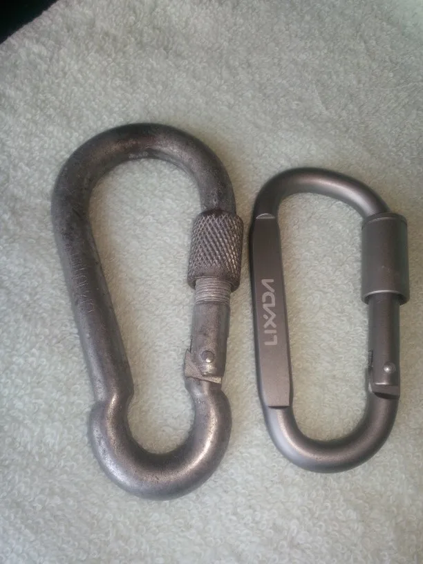 неплохие карабинчики из лёгкого сплава, похоже дюралюминий или что-то подобное