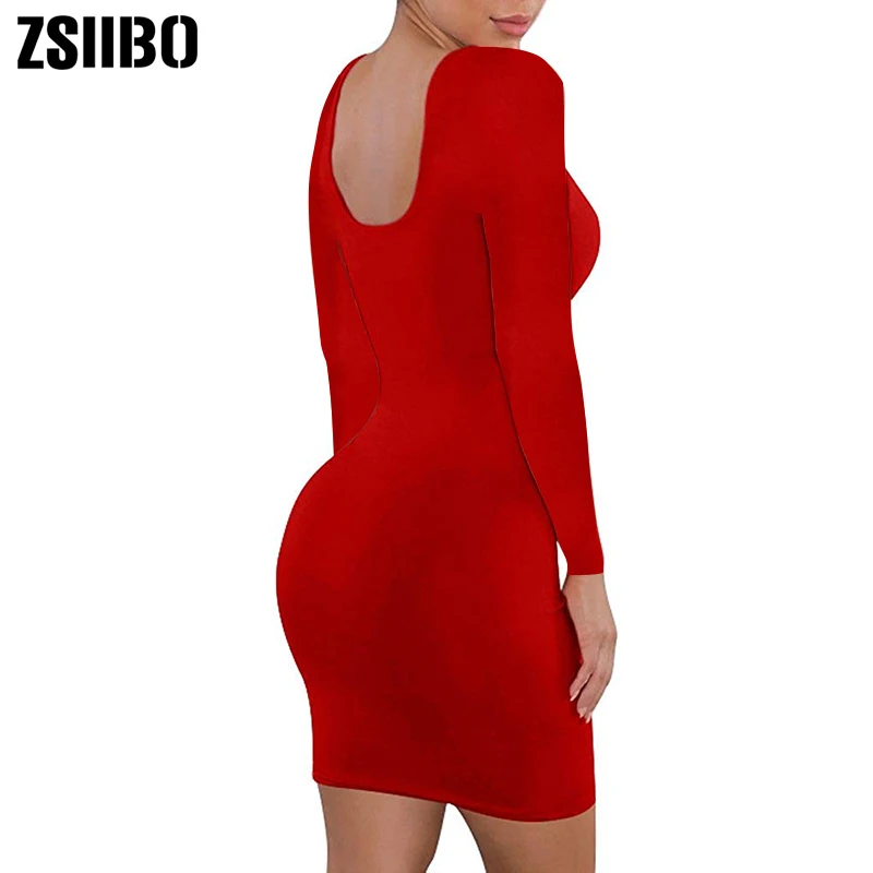 ZSIIBO женское повседневное летнее осеннее платье с длинным рукавом без рукавов Мини сексуальное облегающее Клубное платье с низким вырезом Прямая поставка