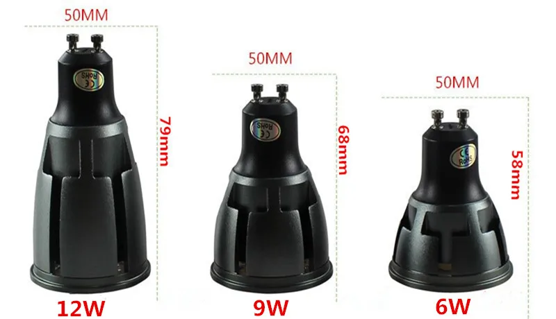 Светодиодные лампы GU10 COB с регулируемой яркостью, 6 Вт, 9 Вт, 12 Вт, 85 265 В, GU10, точесветильник светильник, светодиодная лампочка, лампочка CERoHS, теплыйхолодный белый свет, 10 шт.