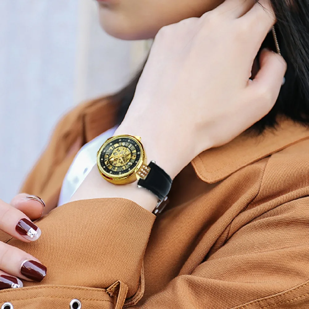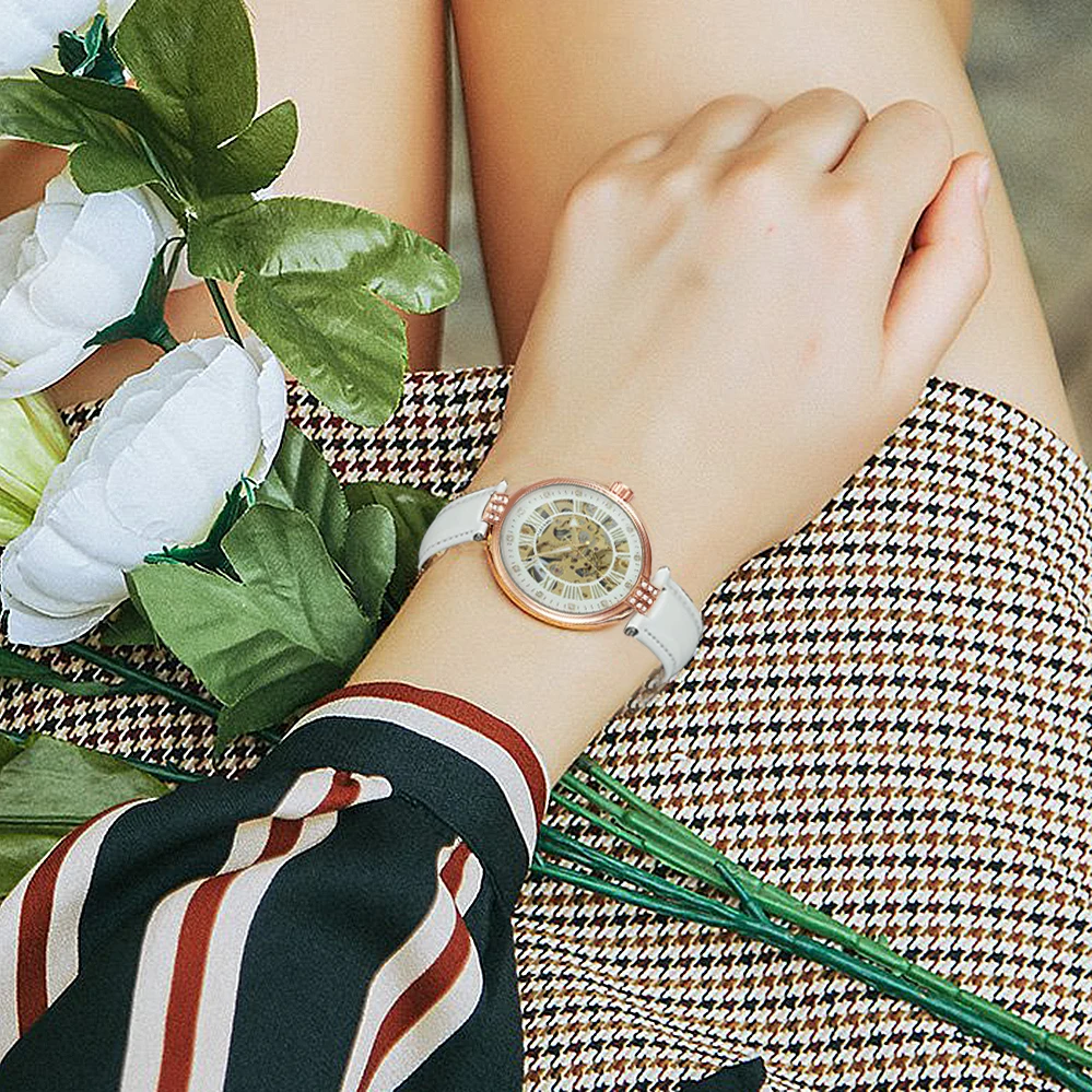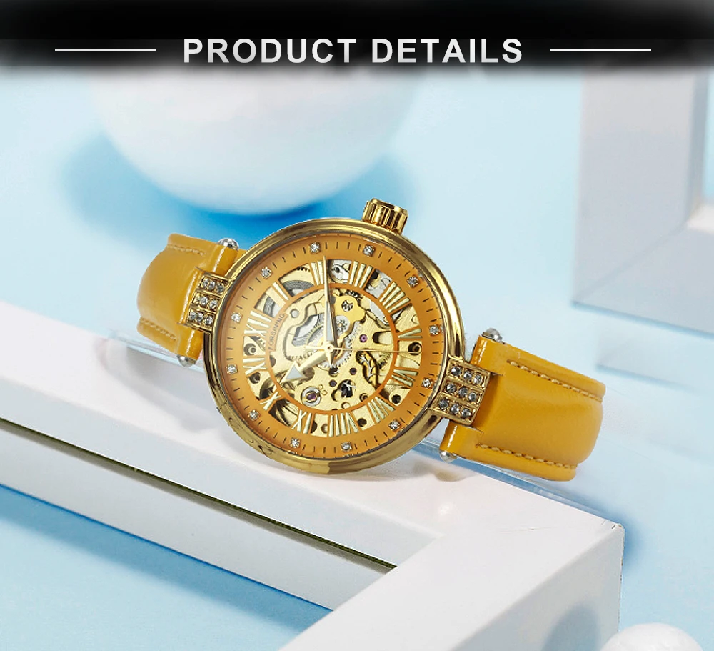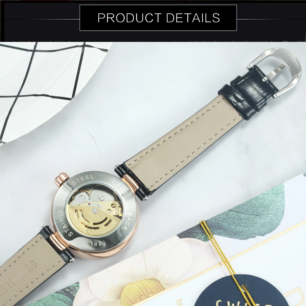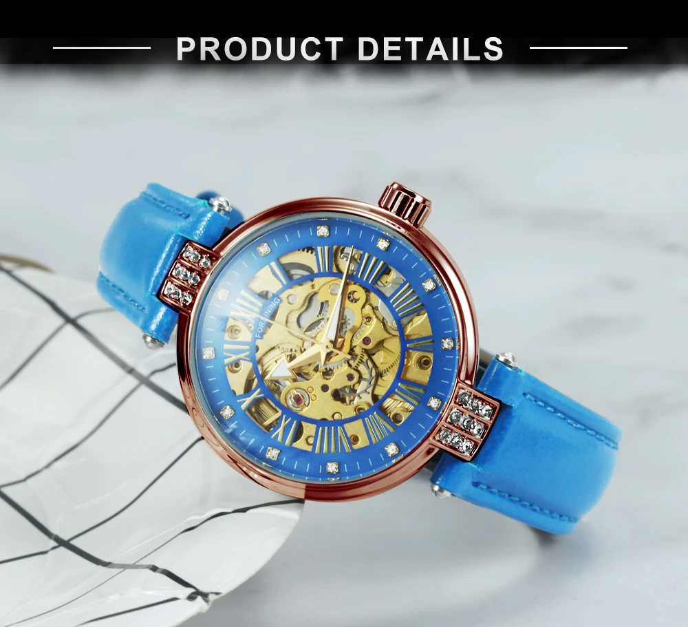 FORSINING 2019 новые женские часыБренд: FORSININGСтиль: Модный, Повседневный, деловой, роскошный, спортивныйОсновная особенность:1. Часы со стразами и ледяным дизайном, роскошный элегантный стиль2. Новые модные часы с кожаным ремешком.3. Гарантия хода на 12 месяцев.Характеристики:Диаметр циферблата: 34 ммТолщина корпуса: 10 ммДлина Часов: 225 ммШирина ремешка: 16 ммВес часов: 42,5 гМеханизм: механический с автоматическим автоподзаводом (батарея не требуется)Материал стекла: HardlexТип застежки: ПряжкаФункция: светящиеся стрелкиВодонепроницаемость: Повседневная Водонепроницаемость (не для плавания или душа)Подходящий повод:Идеально подходят для любых случаев и событий: вечеринки, годовщины, бизнес-встречи, различные виды спорта, мероприятия в помещении или ежедневное использованиеПосылка1 наручные часы (подарочные коробки не входят в стоимость)