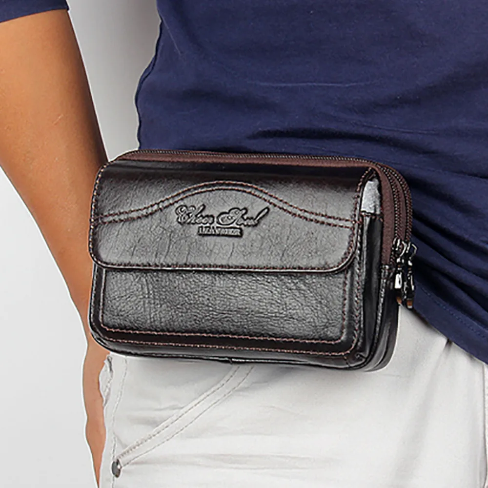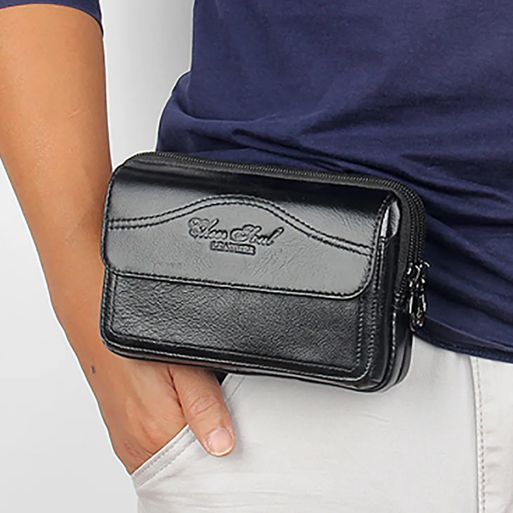 Чехол-клатч мужской из натуральной кожи, на пояс, мобильный телефон