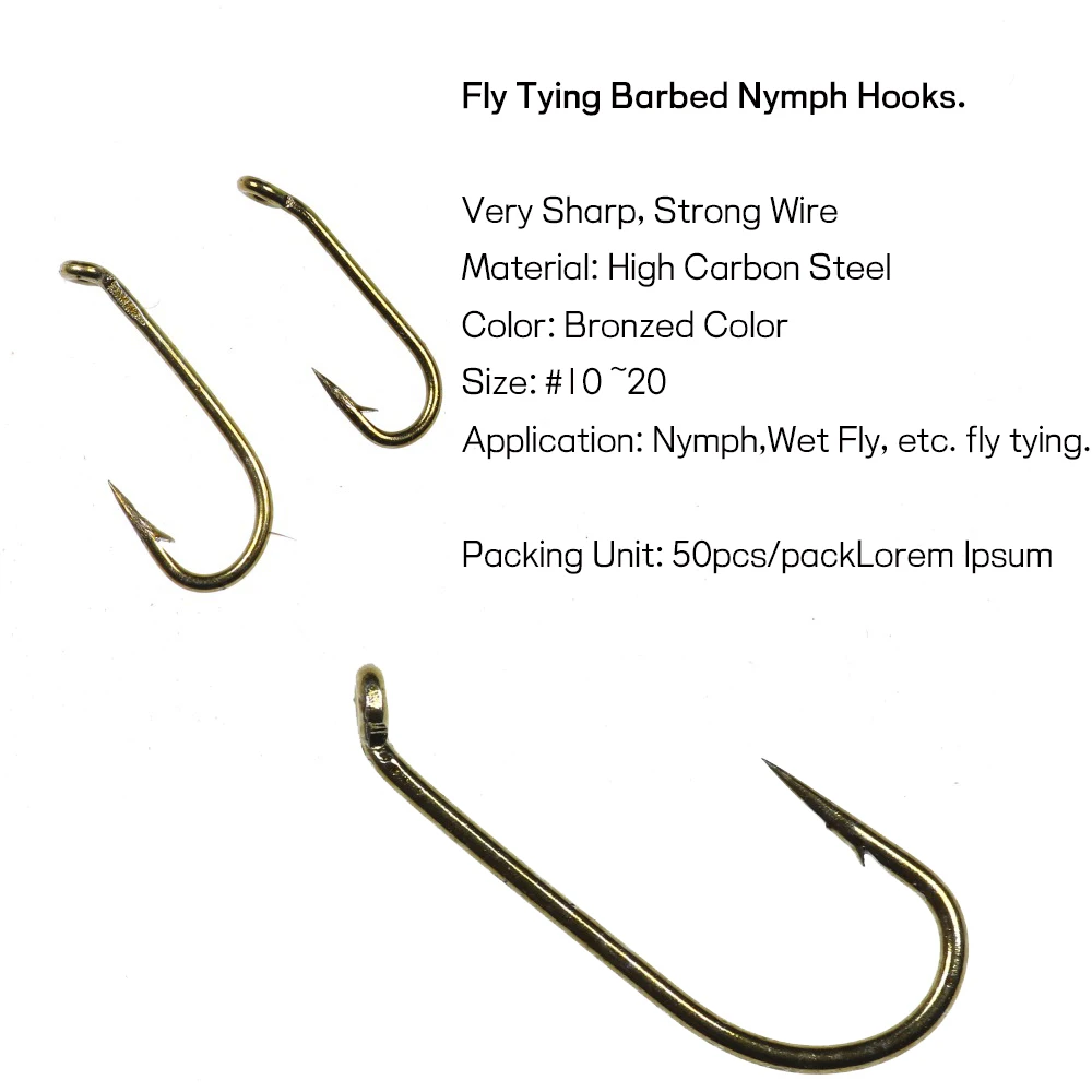 50 шт. крючок для завязывания мух, влажная Нимфа, нахлыст, рыболовный крючок для форели, Размер 10, 12, 14, 16, 18, 20, острый нахлыстовой крючок