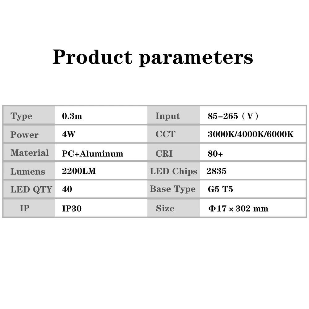 4 шт. T5 Светодиодная трубка G5 база 4 Вт 1фт 300 мм 302 мм Люминесцентная Сменная Трубка Светильник лампа AC180 265В 220В