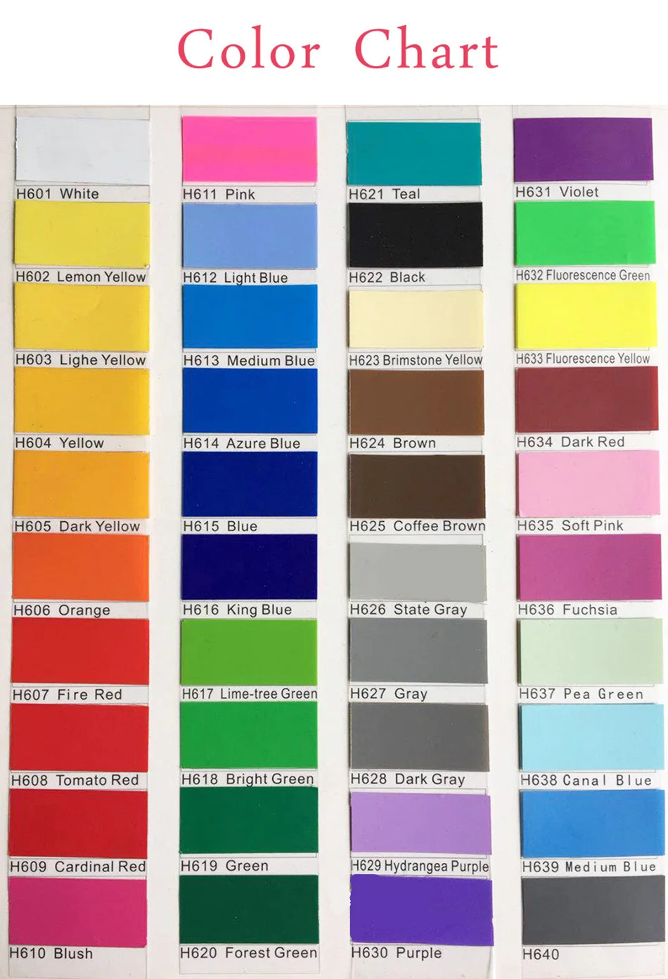 2. Если вы выбираете «другой цвет», пожалуйста, оставьте нам сообщение в вашем заказе или свяжитесь с нами для кода цвета, который вы хотели. Доступны все цвета на цветовой таблице.