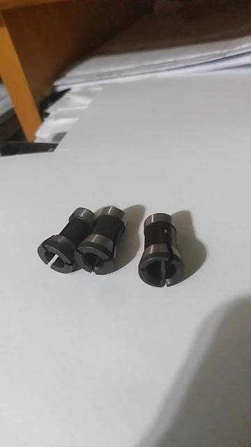 Цанги получены, описанию соответствуют. Качество изготовления на троечку - есть недорезы, подозреваю биения значит тоже будут. За качество звезду и снял. Брал без проверки размеров - поторопился, размеры не для моего фрезера, понадеялся на комментарий где один лопух написал что для макиты RT0700 подходит, но они НЕ ПОДХОДЯТ! У макиты направляющий поясок 9.5мм, у этих 10мм, верх цанги 13.8мм, у этих 11.8мм и 12.7мм. Похоже придется самому делать все-таки эти цанги.