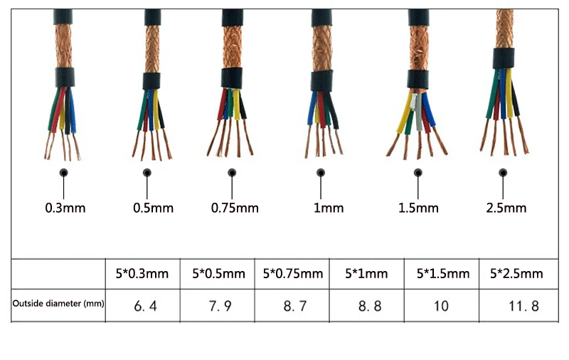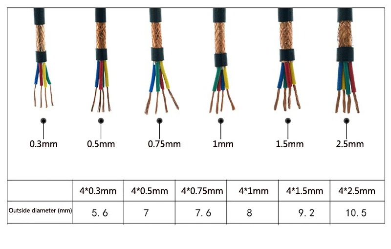 5-метровый экранированный кабель RVVP, звуковой электрический провод, контрольная линия сигнала, 2345 контактов, медный провод 0,3, 0,5, 0,75, 1, 1,5, 2,5 мм