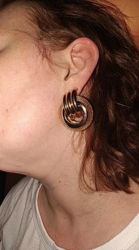 Серьги просто бомба!! Таких на али больше нет! Качество шикарное, цвет, блеск. Достаточно большие, я ожидала чуть меньше. Легко носить. Выглядят оооочень круто и стильно. Если любите в этом стиле, заказывайте и не думайте, не пожалеете!!