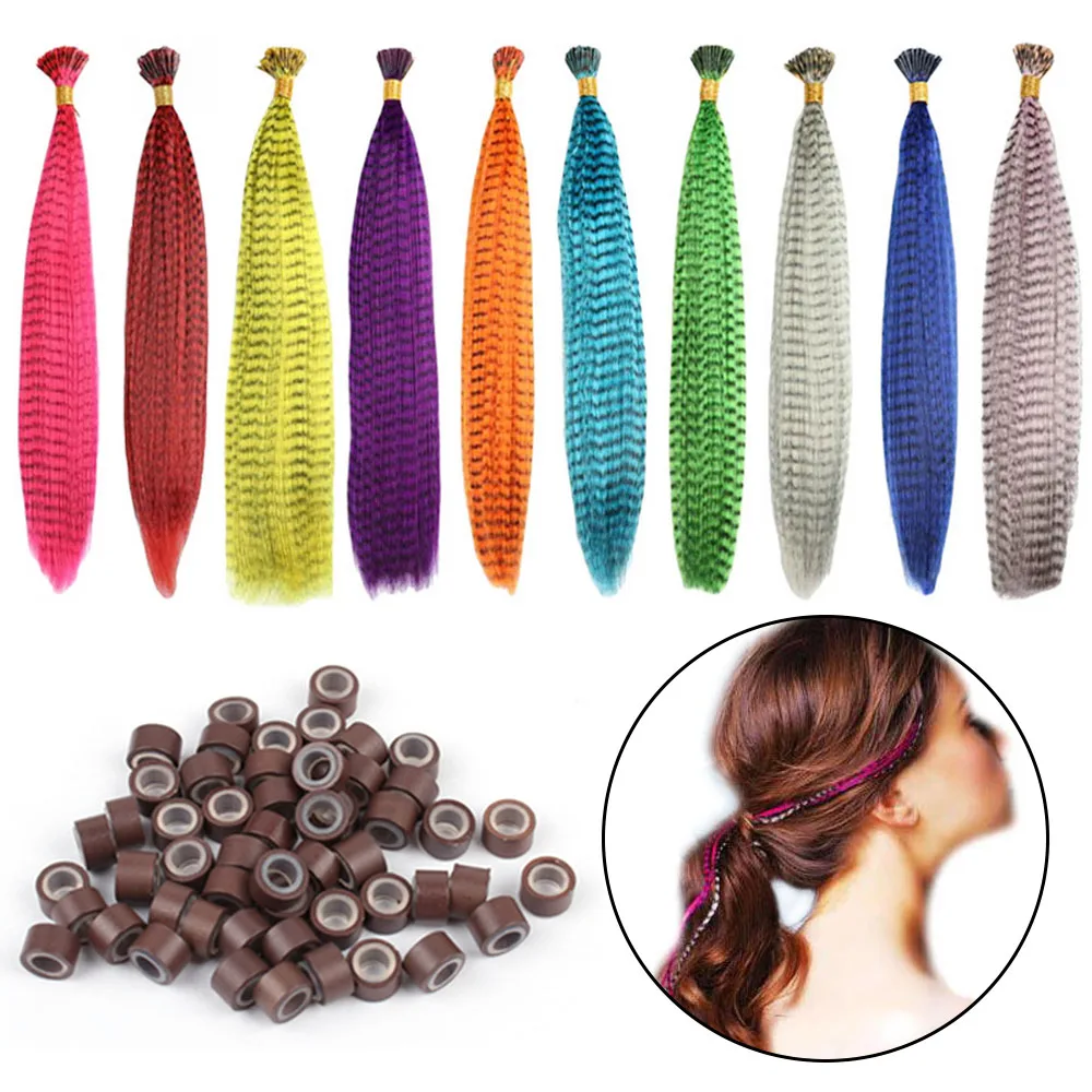 Искусственные перья для наращивания волос, многоцветные, 55 шт.