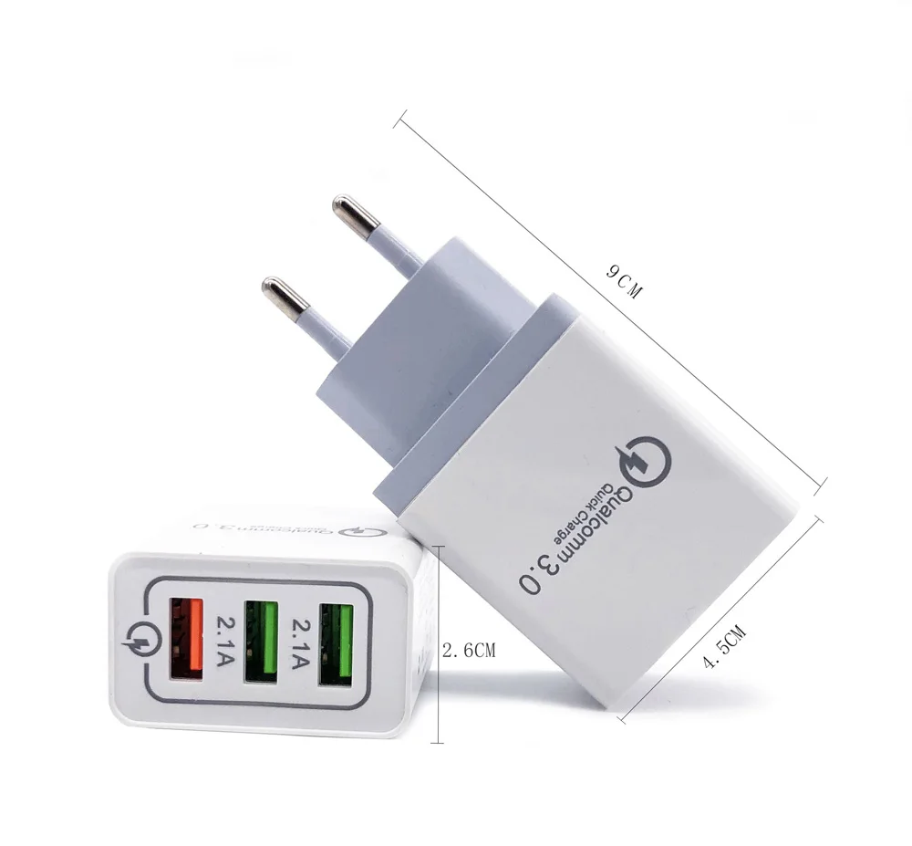 Зарядное устройство с 3 USB-портами для ЕС, быстрая зарядка 3,0 для...