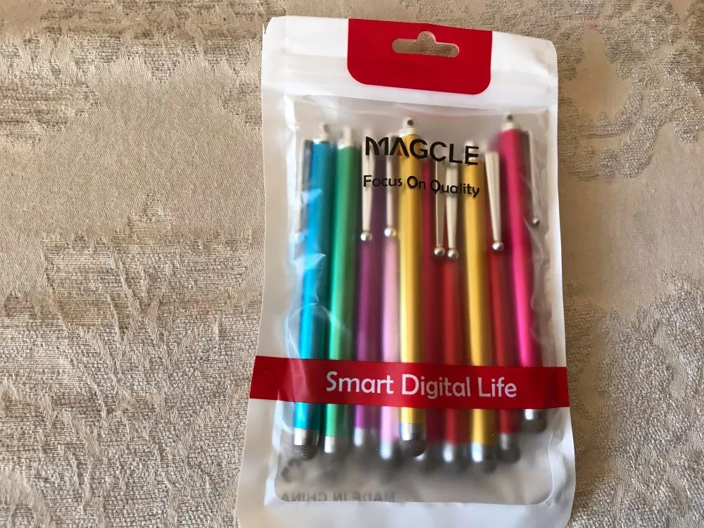Получил десять стилусов в пяти цветах (2 зеленых/2 черных/2 розовых/2 фиолетовых/2 синих). Отправка была быстрой, учитывая текущие санитарные обстоятельства. Спасибо продавцу. Я рекомендую этого продавца.