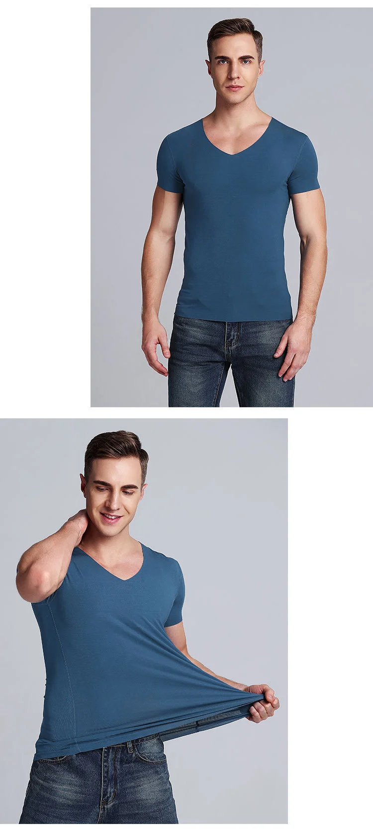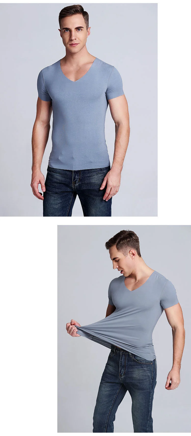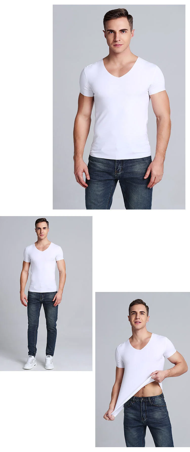 Новинка 2021, Мужская бесшовная футболка с V-образным вырезом, мужская приталенная дышащая мужская футболка из вискозы, Мужская футболка для фитнеса и спортзала, топы