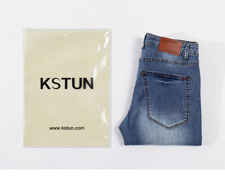 Мужские джинсы KSTUN, весна-осень 2021, деловые, повседневные, прямые, облегающие, для фитнеса, эластичные, голубые, мужские джинсы в ковбойском стиле