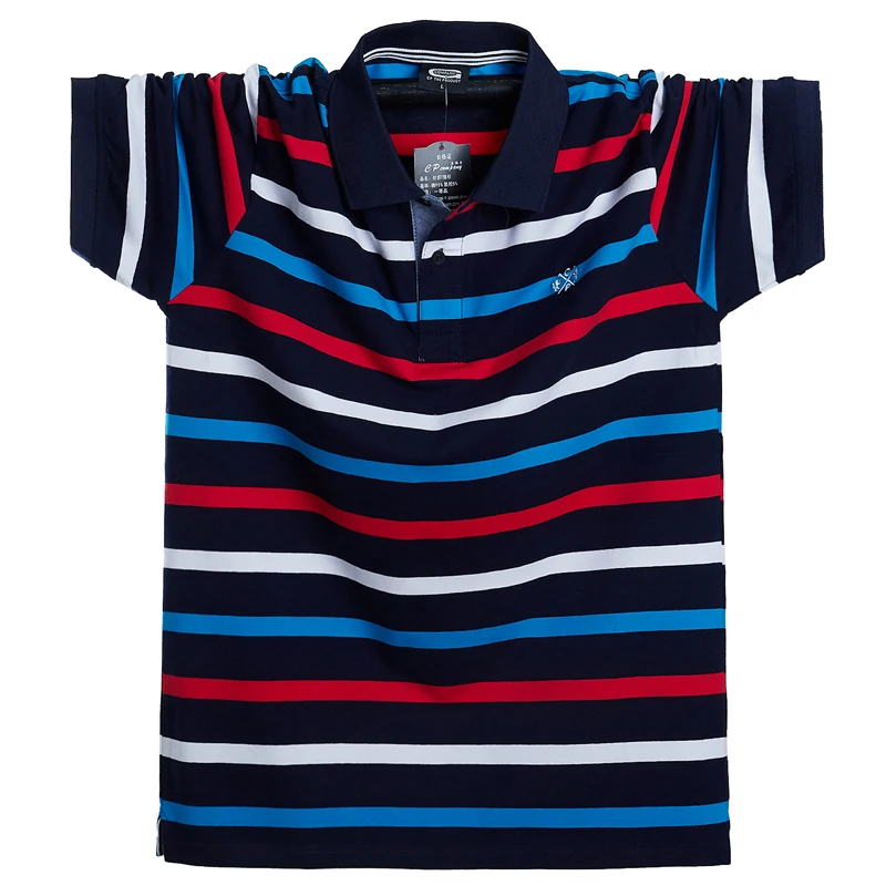 Рубашка-поло Мужская дышащая, короткий рукав, в полоску, Повседневная модная одежда, чистый хлопок, большие размеры 5XL 6XL, на лето